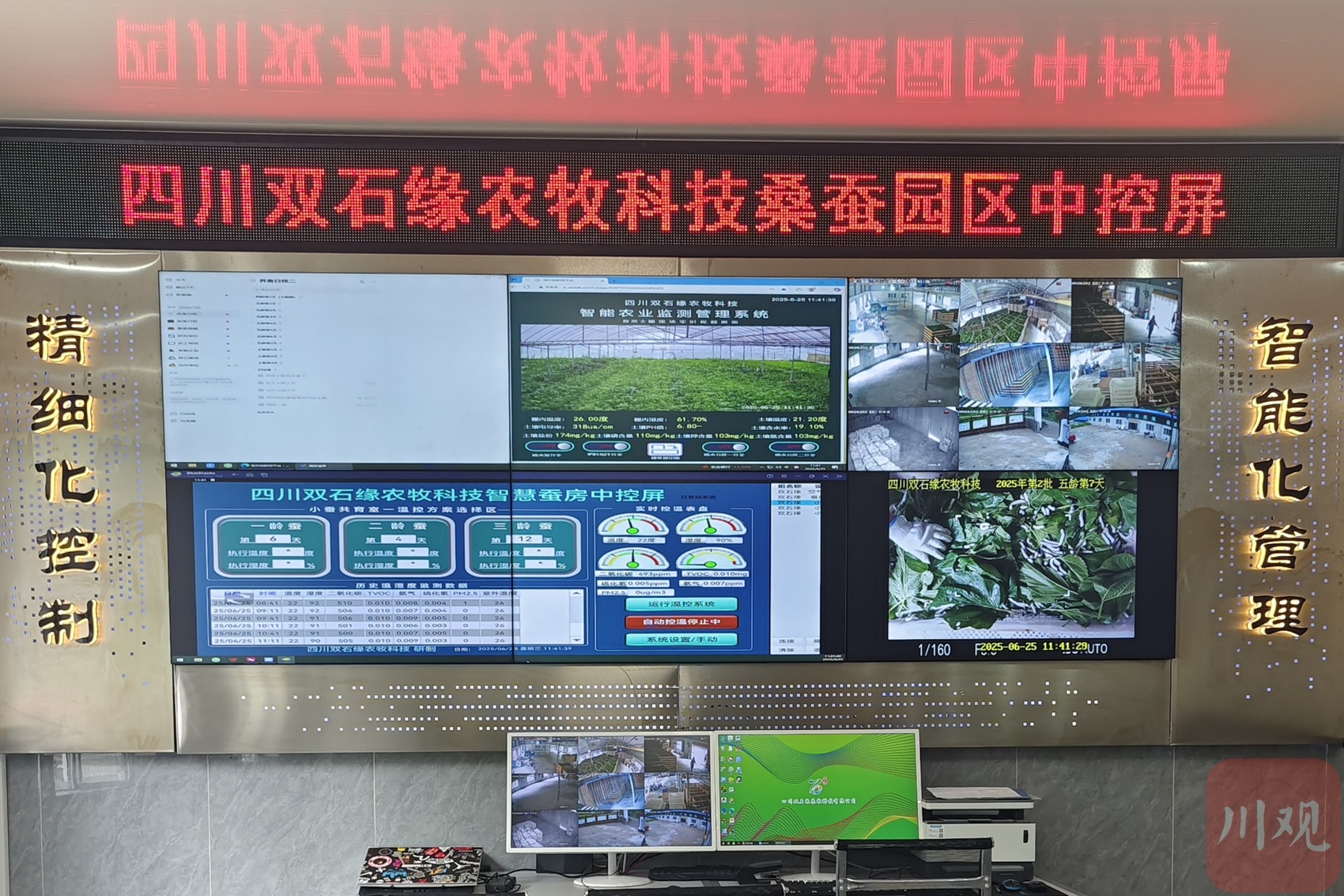 四川双石缘农牧科技桑蚕园区中控屏。徐兴龙摄
