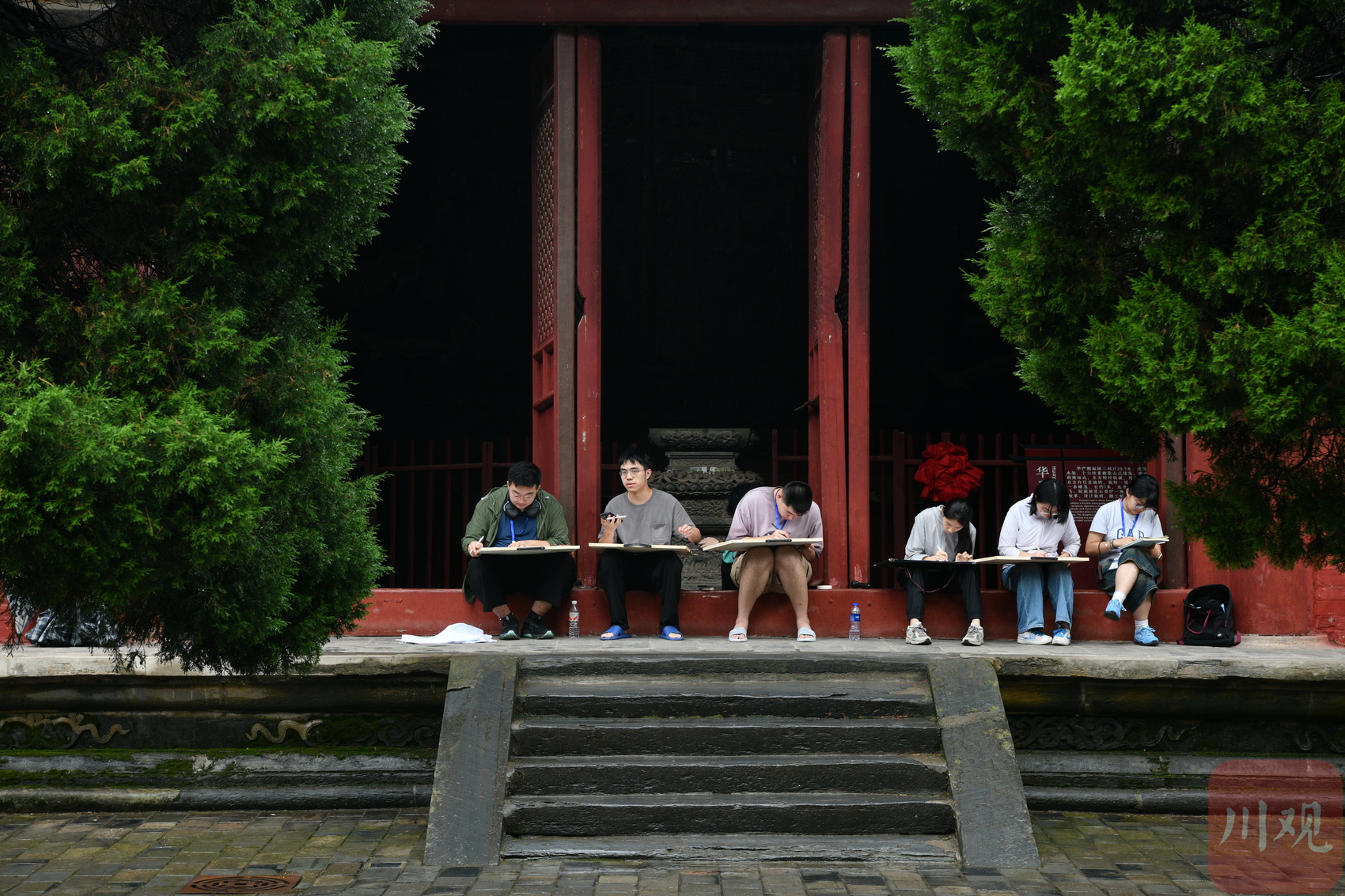 重庆大学建筑城规学院的学生们坐于天王殿前描绘