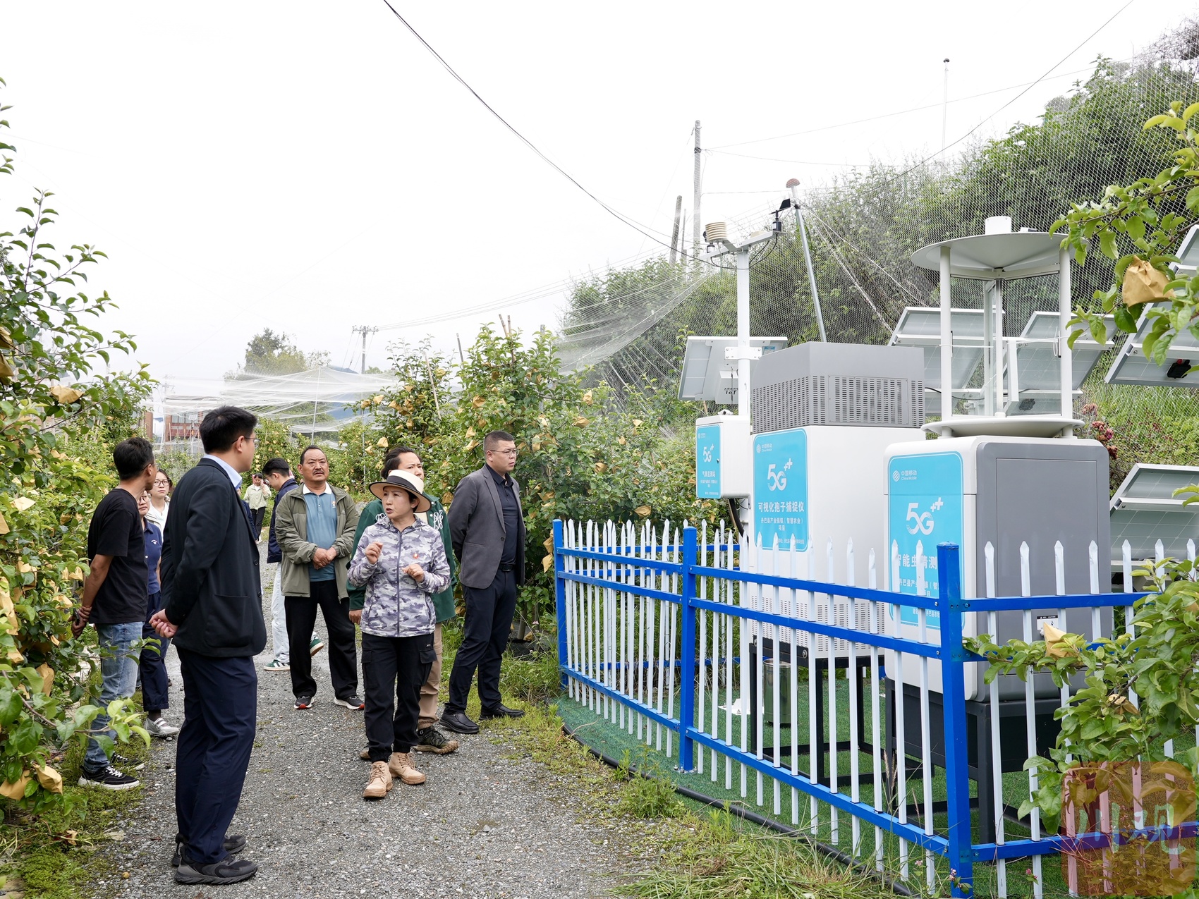 工作人员在“美人脆”苹果基地讲解农业智慧系统。