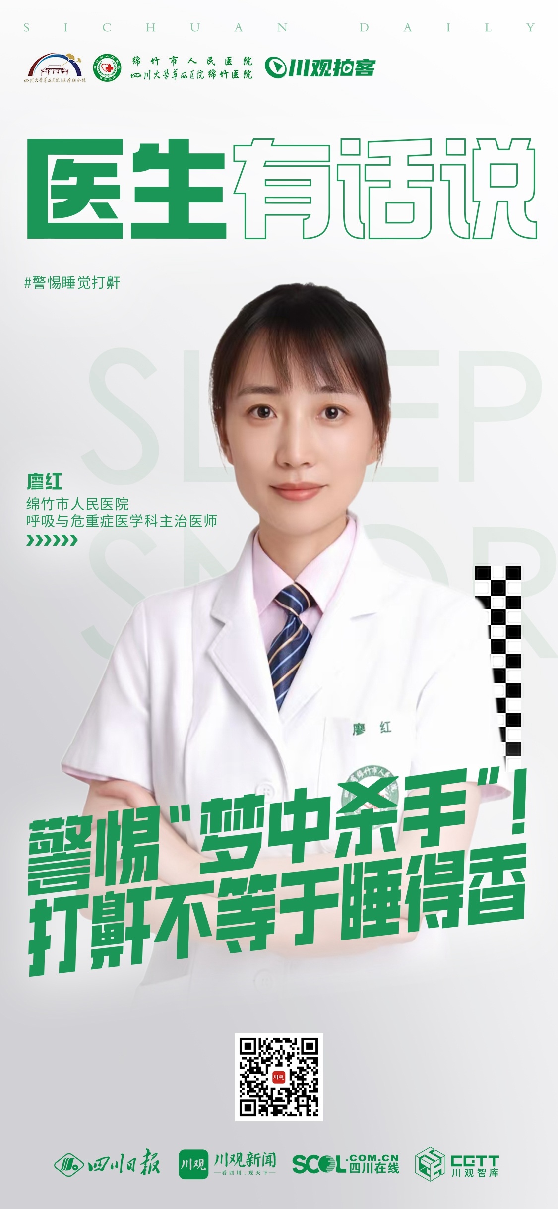 本期栏目,来自绵竹市人民医院呼吸与危重症医学科的主治医师廖红,就跟大家聊一聊阻塞性睡眠呼吸暂停低通气综合征的症状危害以及如何预防治疗。