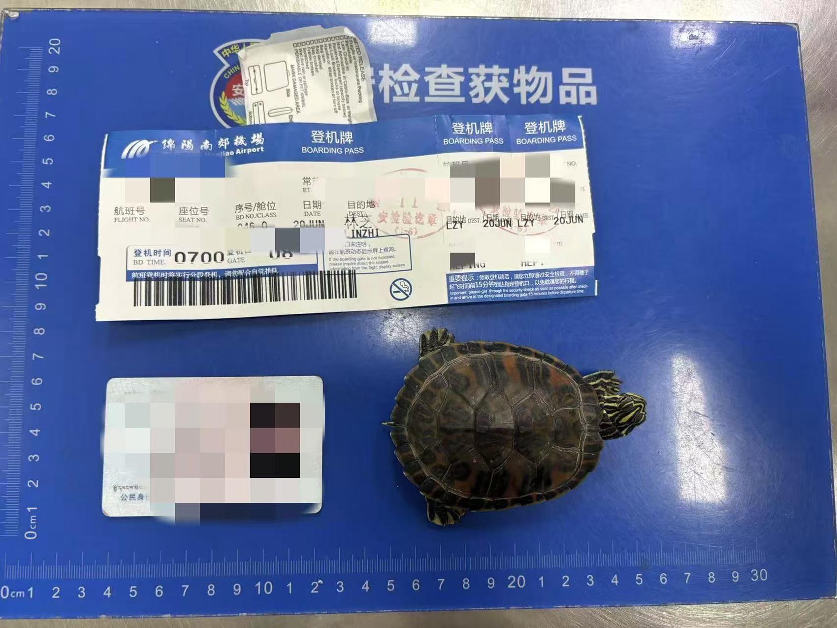 绵阳机场安检站提醒广大旅客:活体动物属于航空运输限制携带物品,未经许可严禁随身携带或办理托运。同样违禁品“花式藏匿”不可取,请广大旅客严格遵守民航安全规定,才能让旅途真正安心、顺心。