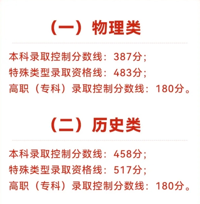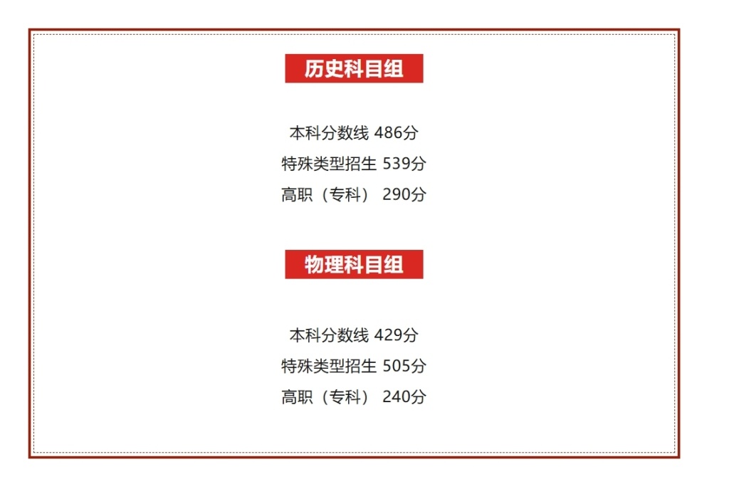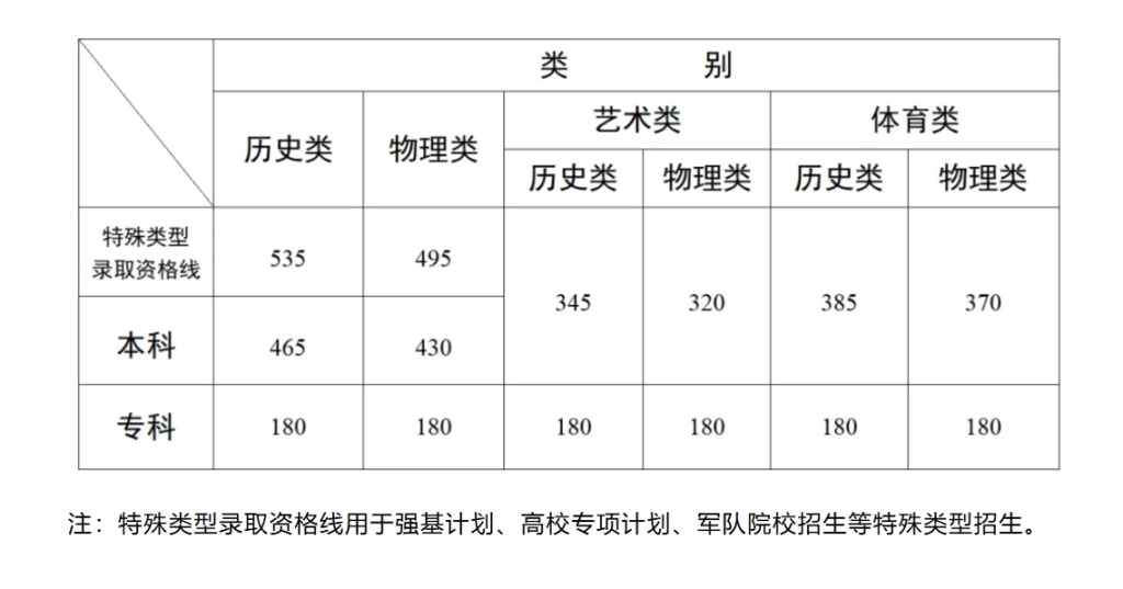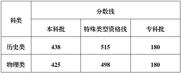 3.普通特殊类型招生资格线:历史类480分,物理类472分。