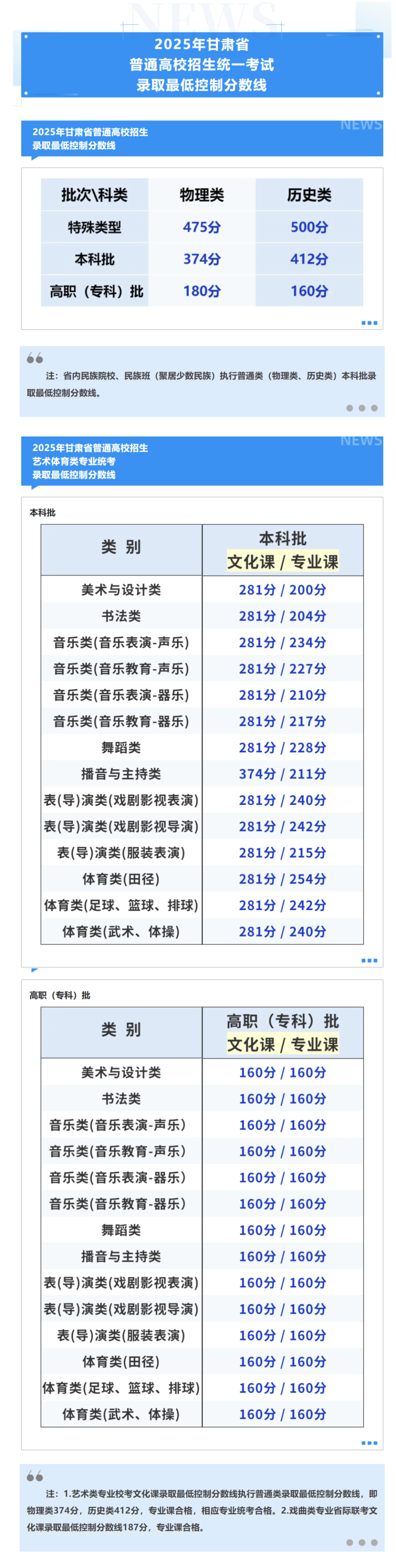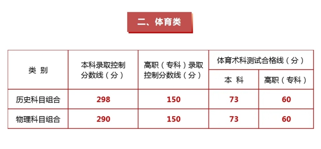 2.体育类高职(专科)批文化课录取控制分数线:体育(历史类)150分,体育(物理类)150分。