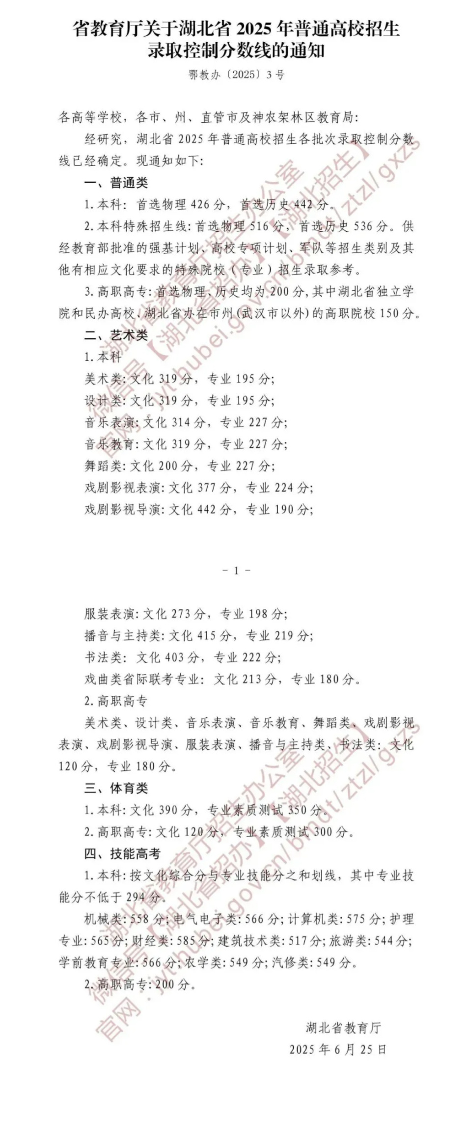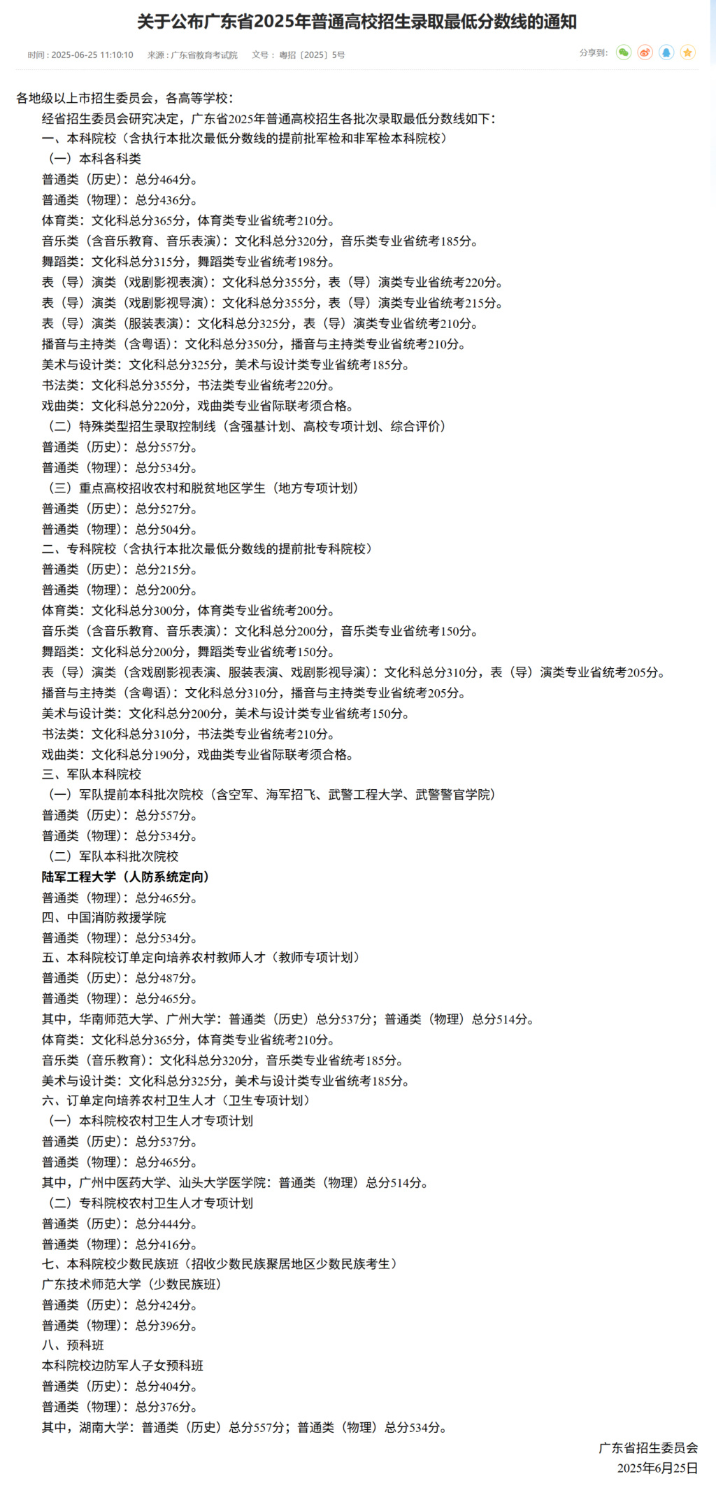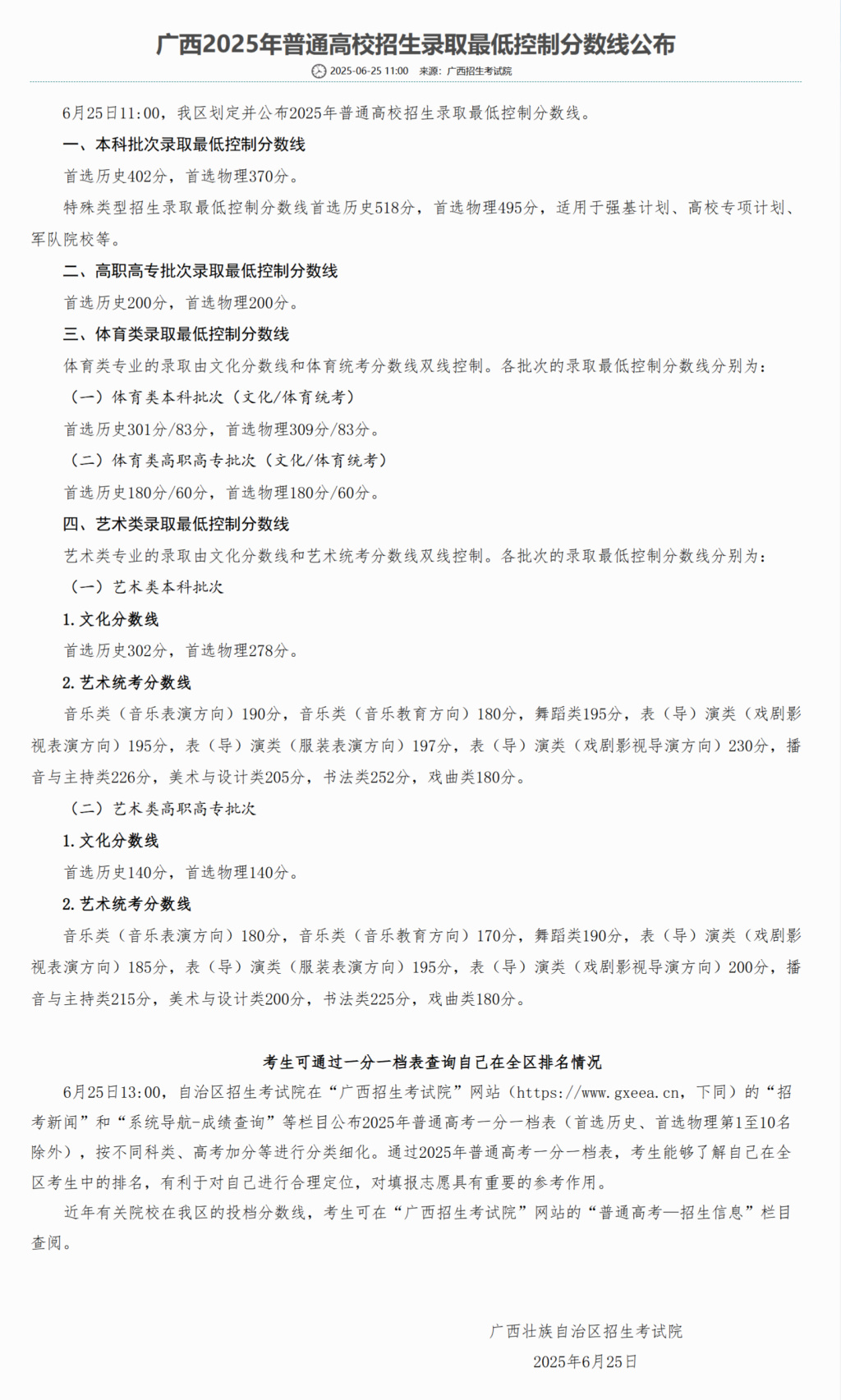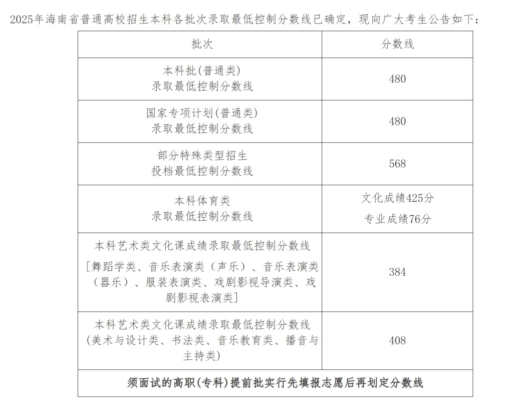 经黑龙江省招生考试委员会审议通过,2025年黑龙江省全国普通高等学校招生各批次录取控制分数线如下: