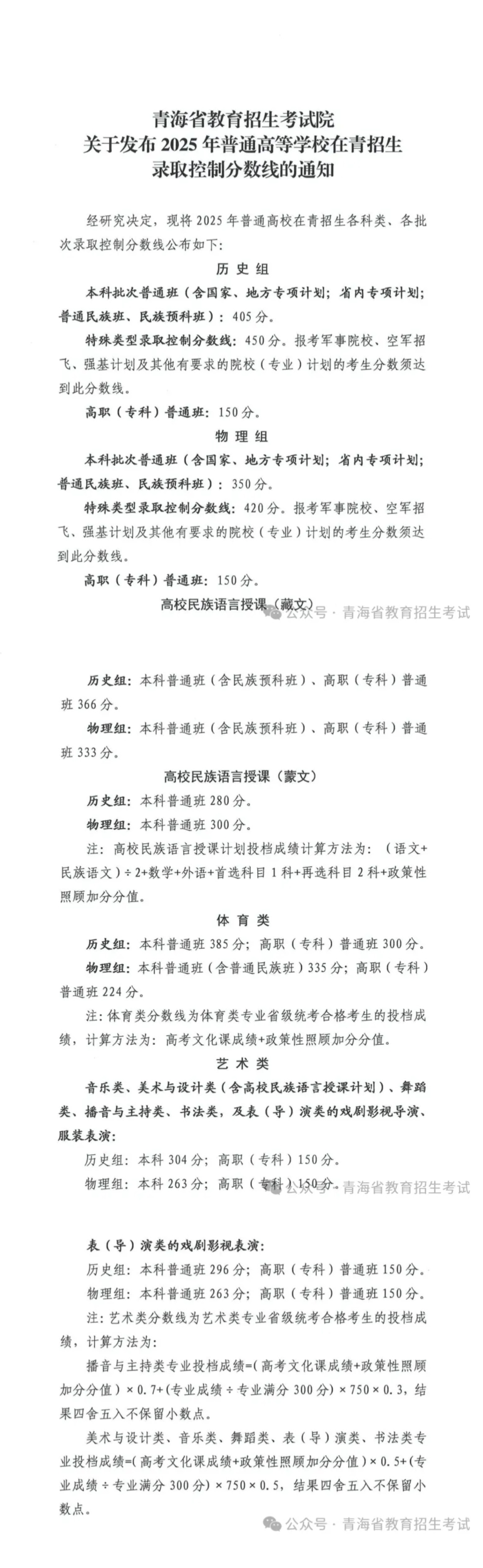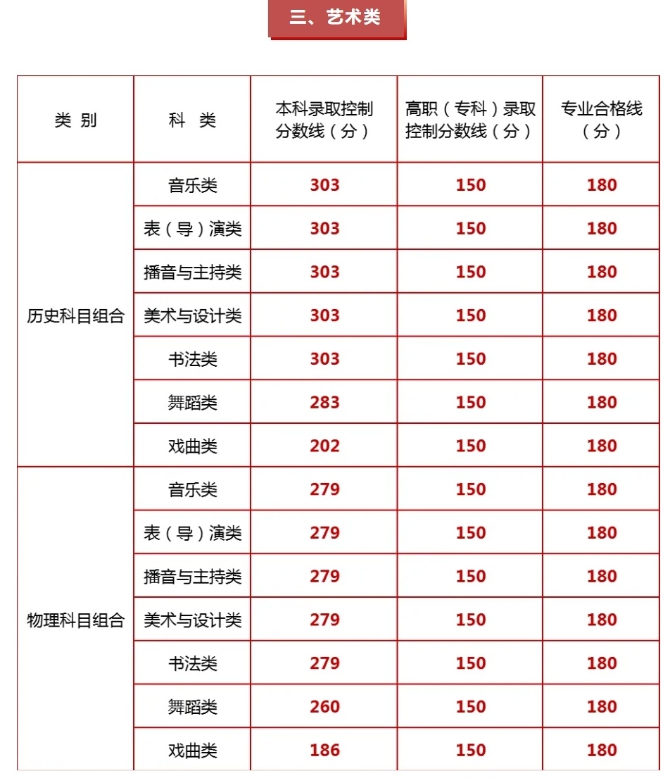 2.艺术类高职(专科)批文化课录取控制分数线:150分。
