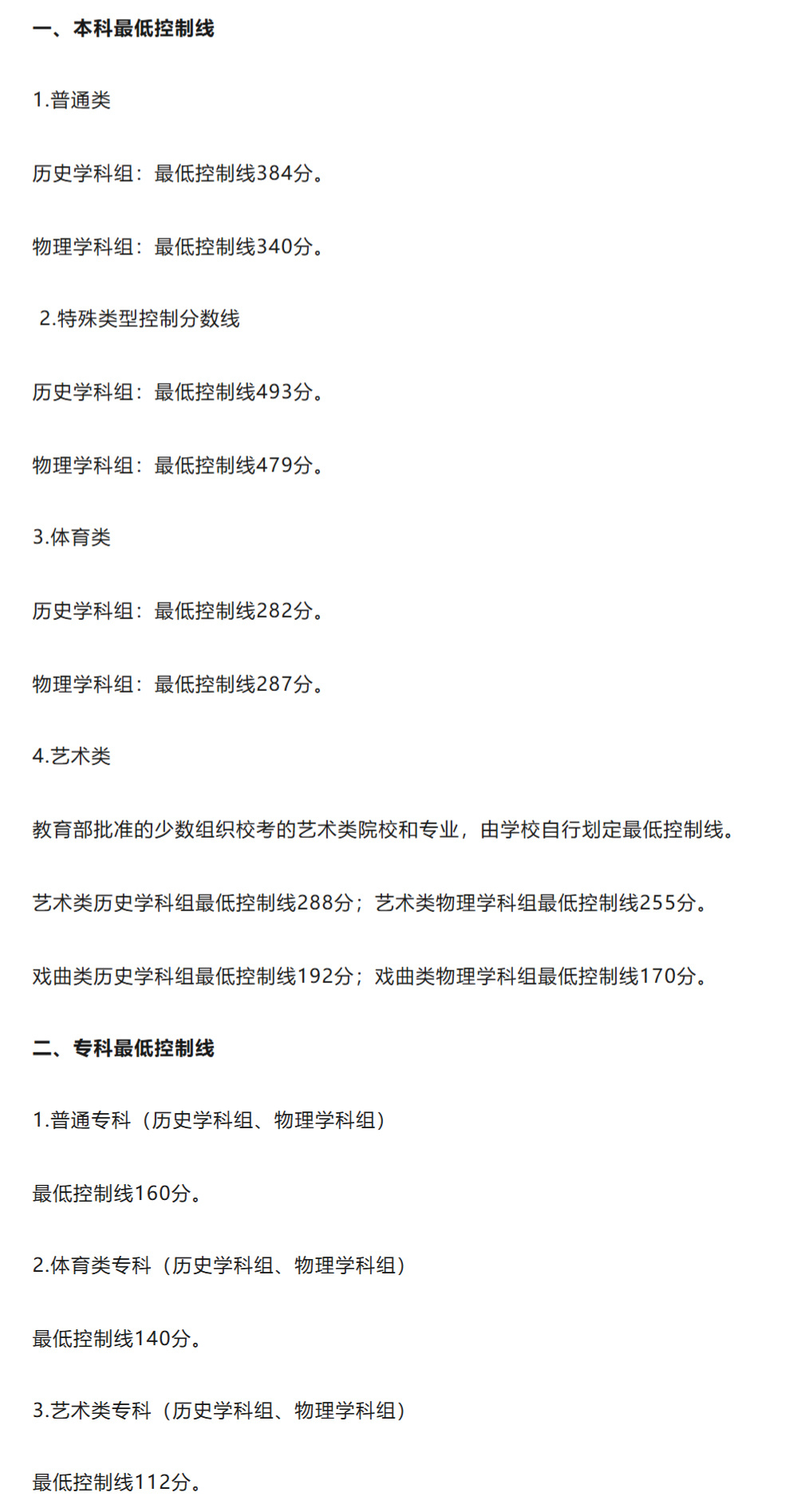 2.普通高职(专科)批录取控制分数线:历史类160分,物理类160分。