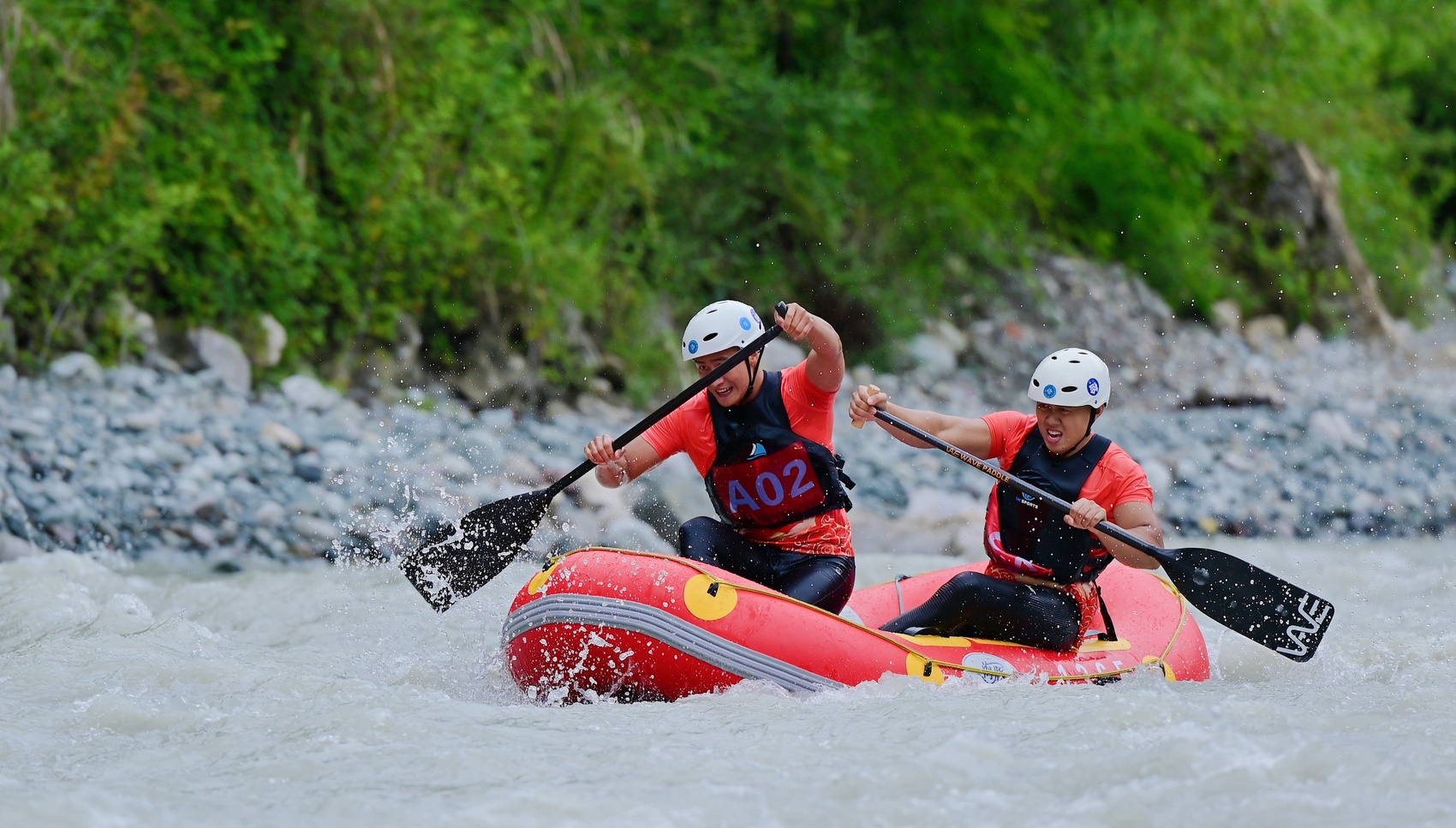 据悉,都江堰漂流赛道设计融合都江堰“三遗之城”特色,以岷江支流白沙河河道为天然赛场,赛事全程6.3公里,自高原码头启航至收船码头,赛道巧妙融合6处惊险刺激的急流区与3段悠然惬意的平缓观光带,选手在白浪激流中,既能体验“水润天府”的生态魅力,亦可远眺青城山的青翠轮廓。