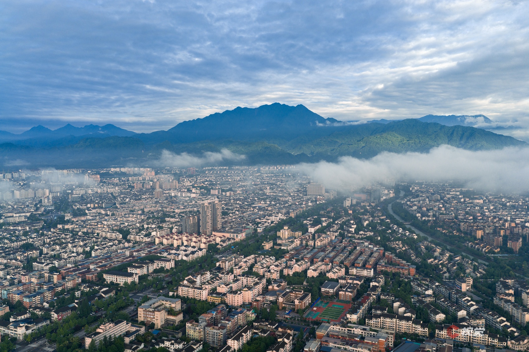 6月25日清晨,雨后的都江堰城被云雾笼罩如同披上薄纱。C视觉签约摄影师 黄伦斌