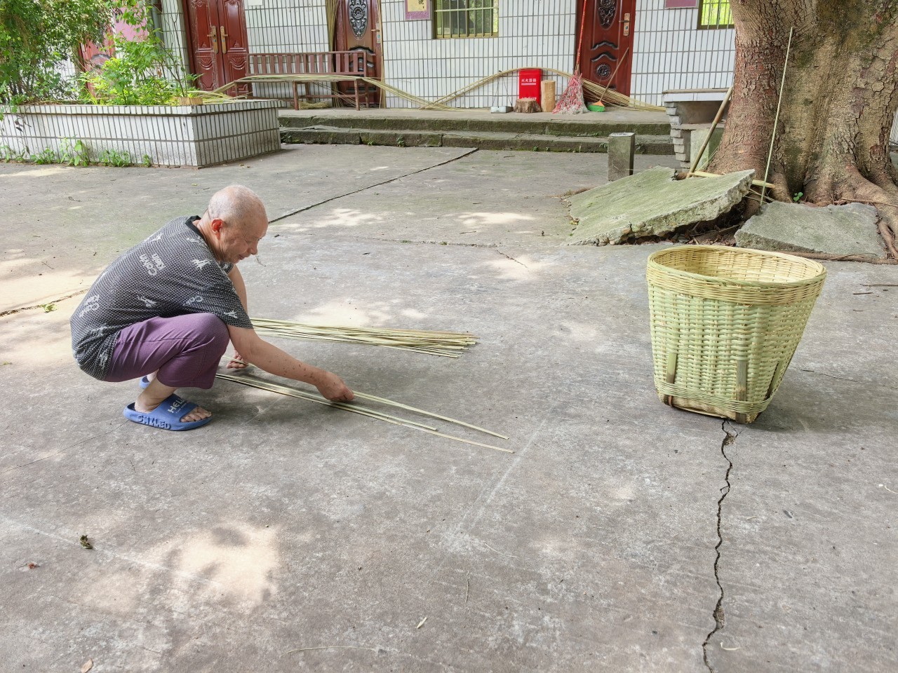 变化浸润在细节中。娱乐室里,67岁的唐一章摸着舒适的影院座椅感慨:“以前只能挤着看小电视,活动少得很。现在有空调,看电视舒服多了。”院坝中,70岁的王安陆手指翻飞,竹篾在他手中渐渐变成精致的背篼。“一个卖35元,去年做了40个。”他指着墙角的竹料笑道,“动动手日子才有滋味,我的背篓还经常有人来订呢。”