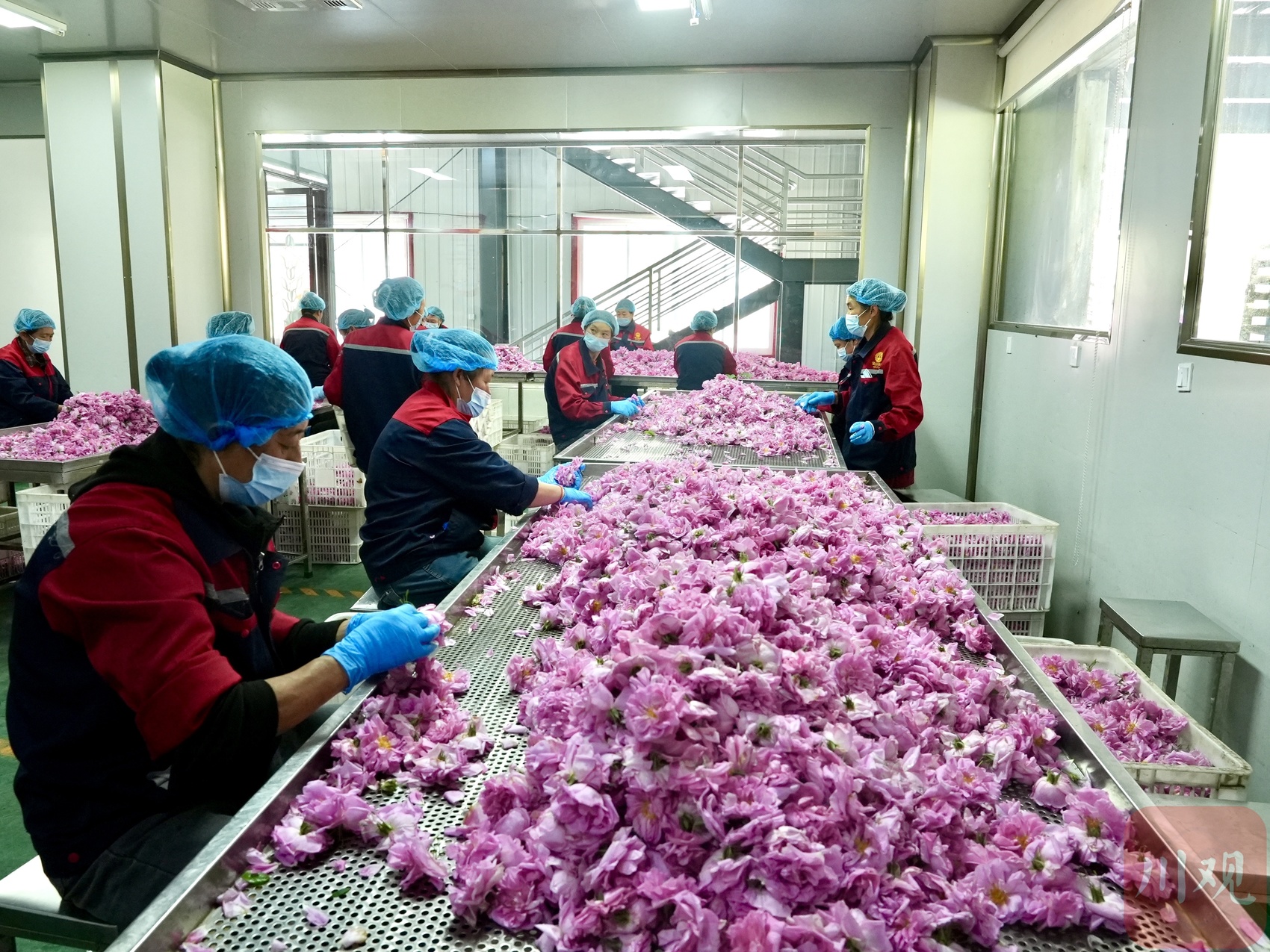 据了解,目前小金县高原玫瑰种植面积已达1.5万亩,年处理鲜花达1820吨,形成了集种植、采摘、加工、销售为一体的全产业链。带动全县13个乡镇、46个村、玫瑰种植户3000余户脱贫致富。近年来,苹果的销售模式由传统销售型向电商销售型转变,苹果单价从2元/斤提升至6元/斤,苹果产业收入较2019年实现200%增长,带动446户、1405名农民人均增收2300元以上。