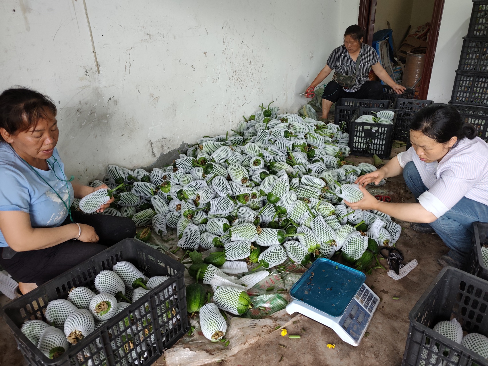5月中旬以来,邓涛的苹果丝瓜陆续采收,在套袋和贴标签后,平均每天要出售2000斤。邓涛介绍,6两至1.2斤1个的苹果丝瓜均是进商超,其中,8两至1斤的为A类货,目前批发价为3.6元/斤,剩下的为B类货,目前批发价为2.8元/斤。此外,单个重1.2斤以上和长相不好看的,主销食堂,价格就比进商超的便宜一点。
