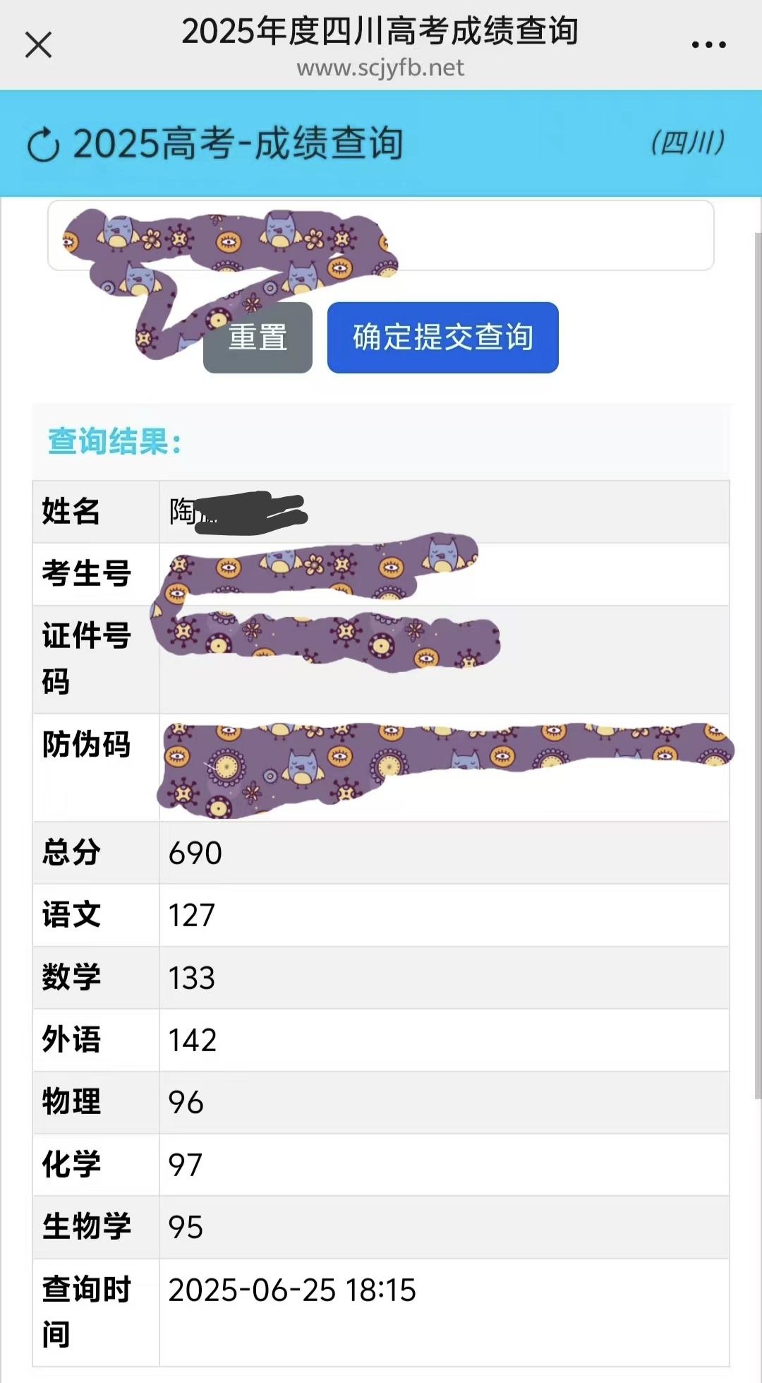 6月25日晚,2025年四川省高考成绩揭晓,达州市鸿鹄高级中学陶同学取得690分的成绩。