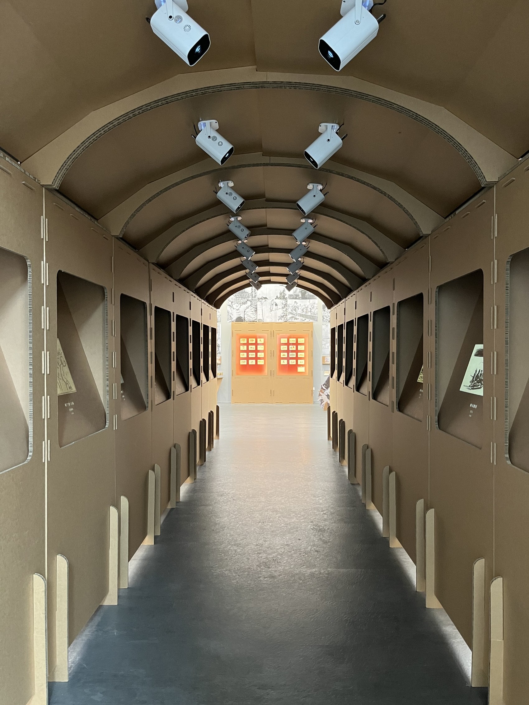 展厅入口处,用瓦楞纸板搭建的“隧道”
