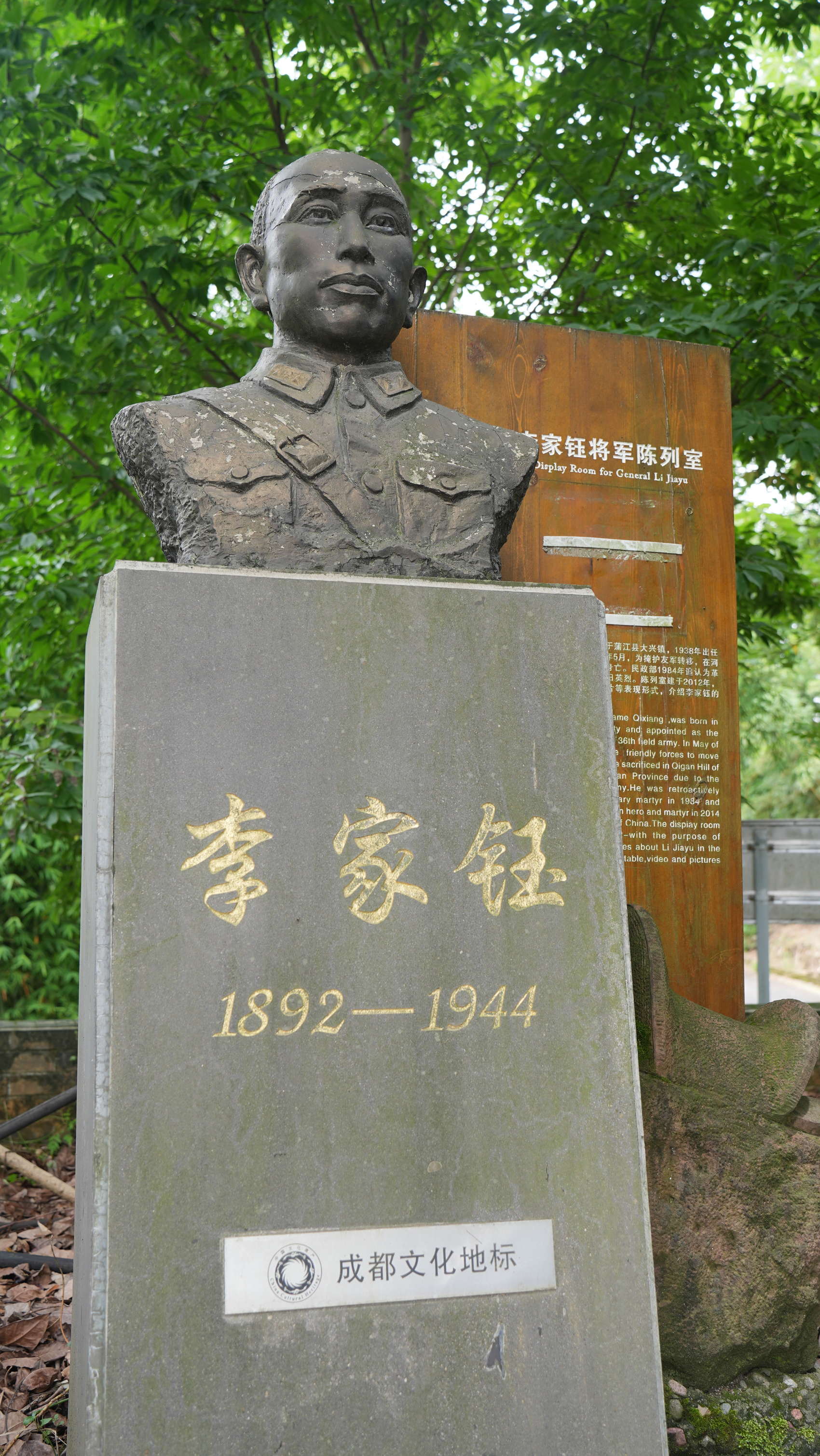 在成都市蒲江县大兴镇炉坪村的李家钰将军陈列室外,矗立着一座李家钰半身雕像,目光炯炯,凝视远方。
