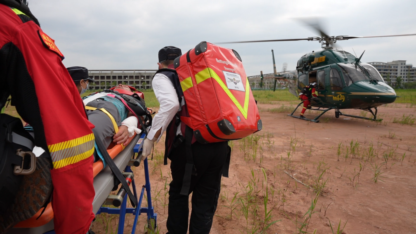 成都市政府值班室接报后立即启动应急预案,应急管理、消防救援、卫健医疗等部门协同响应。成都市消防救援支队航空消防救援大队迅速调配2名飞行员、1架贝尔-429型救援直升机,搭载2名航空消防救援大队任务员与2名华西医院EMT航空医护队员,从淮州机场航空应急保障基地紧急升空。机上配备的担架、呼吸机、除颤仪等专业设备,构建起标准可移动“空中ICU”,为转运途中的生命支持提供保障。