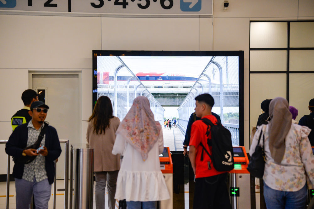 4月28日,在印度尼西亚雅加达,乘客在雅万高铁哈利姆站候车大厅排队进站。新华社记者 徐钦 摄