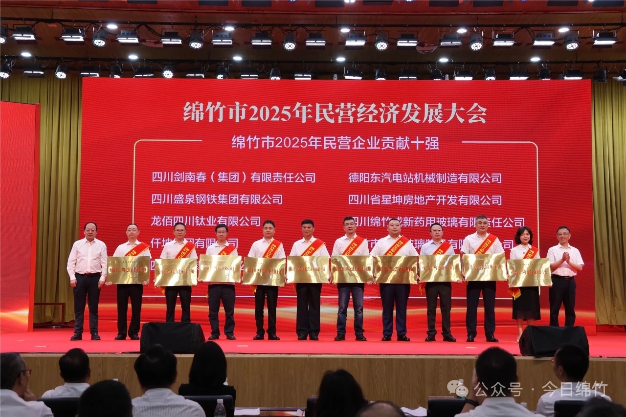 绵竹民营经济发展大会表彰民企贡献十强,其中传统行业民企居多。图据绵竹市融媒体中心