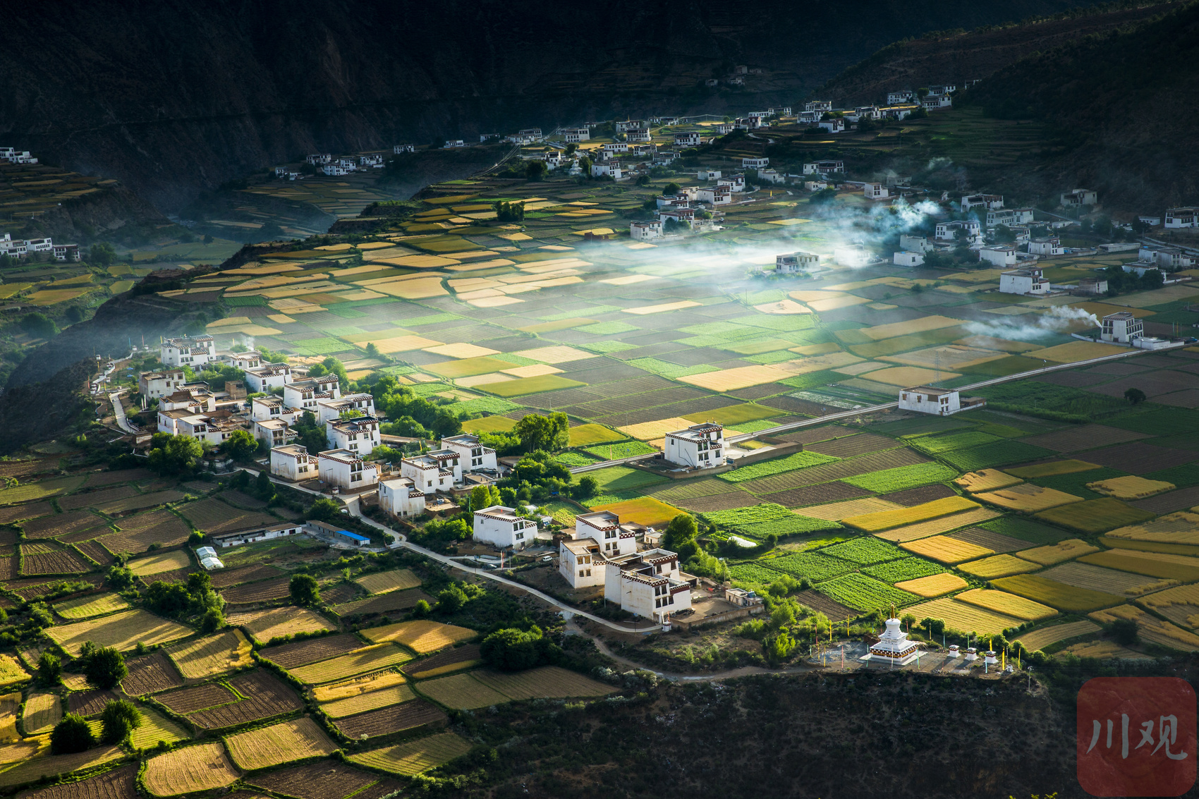 乡城县拥有白藏房、桑披岭寺、“疯装”民族服饰“三绝”,以及查呈沟温泉、尼丁大峡谷、香巴拉七湖等原始自然景观。得益于较低海拔与宜人气候,其农耕田园风光独具特色,是近年来颇受游客青睐的川西秘境。
