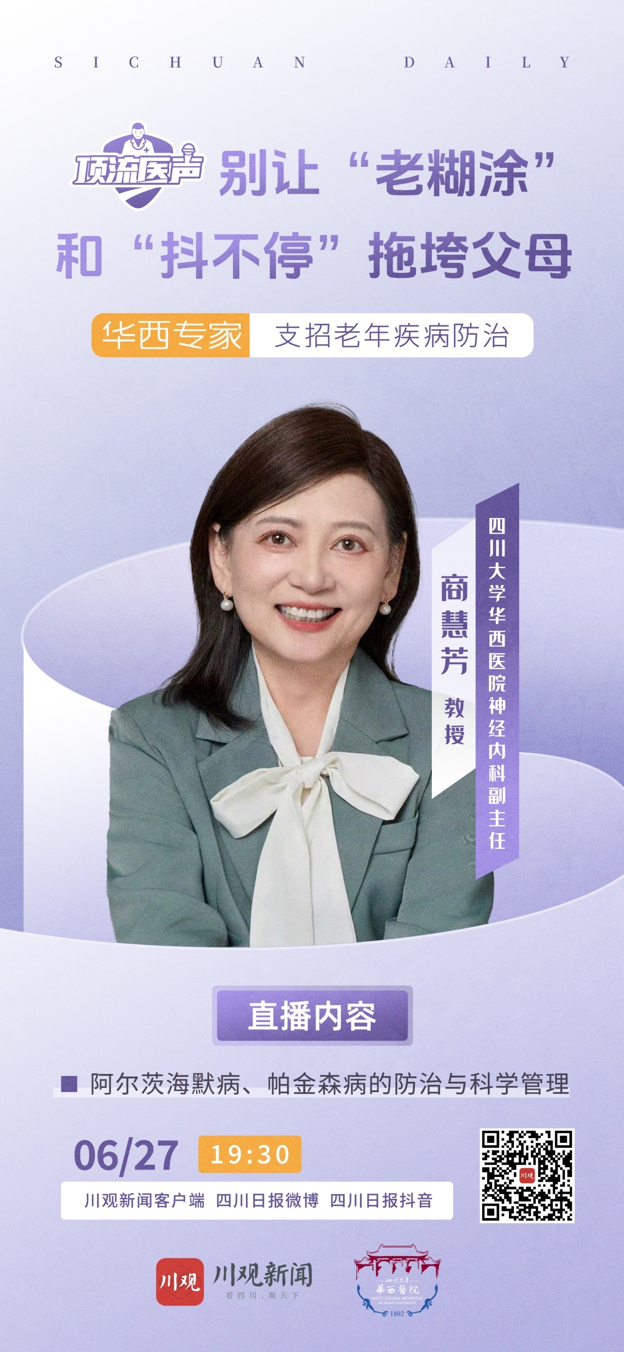 6月27日,四川大学华西医院神经内科副主任商慧芳教授,走进川观新闻“顶流医声”直播间,为大家科普答疑,敬请关注!