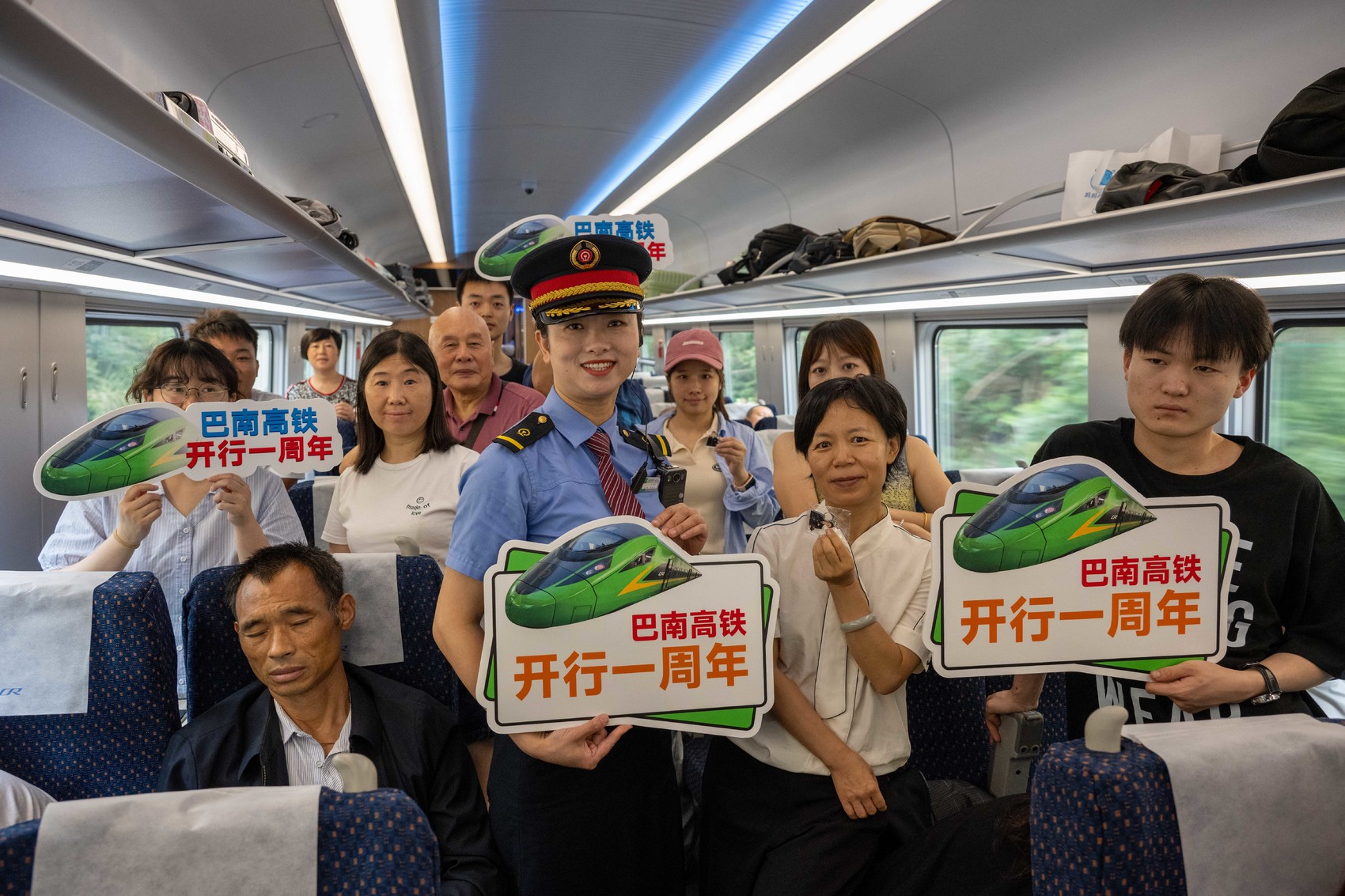 6月27日7点48分,从巴中东站启程开往广州南的D1787次列车鸣笛驶出站台,新建汉中至巴中至南充铁路巴中至南充段(以下简称“巴南高铁”)通车满一周年。一年来,这条铁路开行列车近1万列,运送旅客超700万人次,日均2.1万人次。