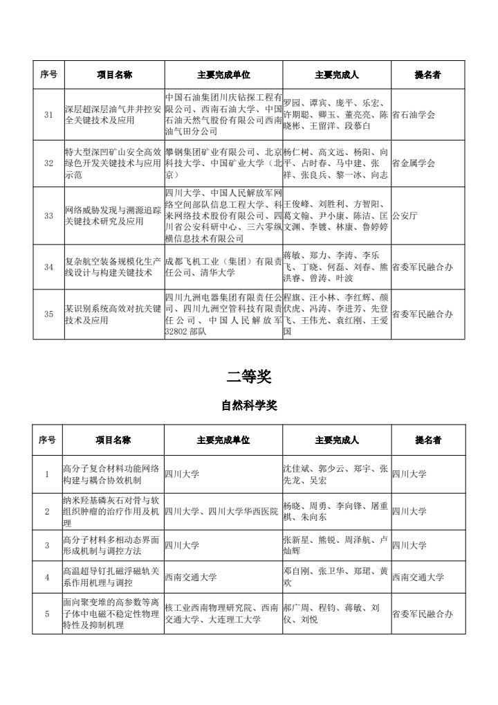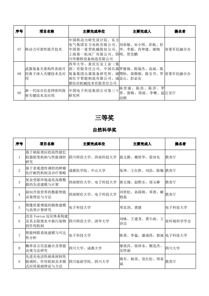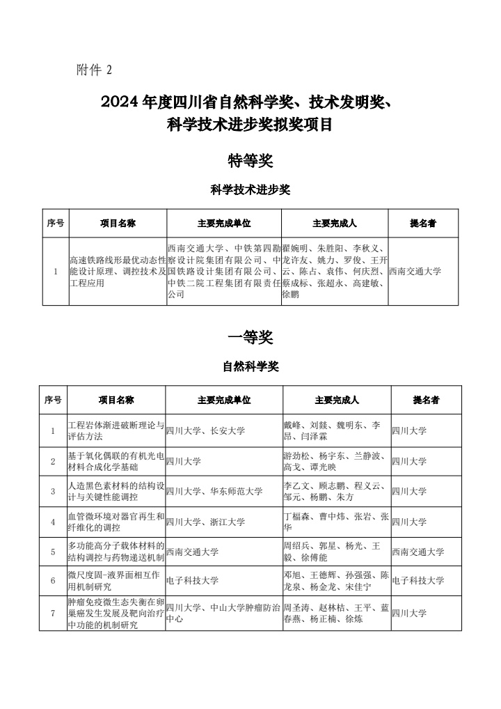 2.2024年度四川省科学技术奖拟奖项目