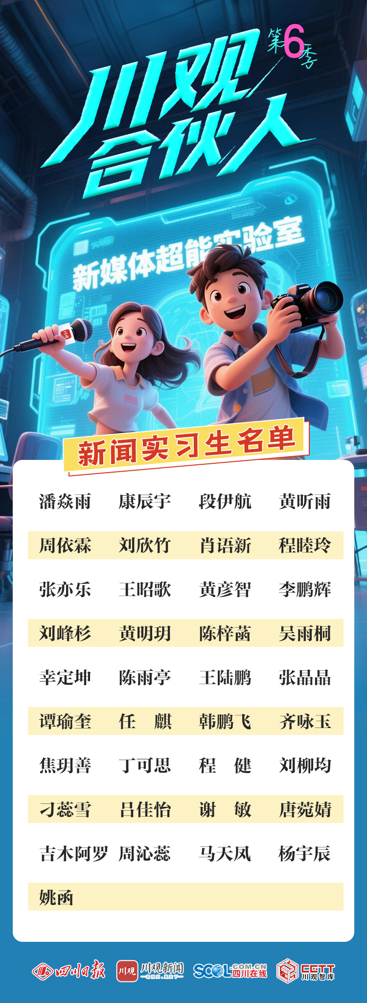“川观合伙人”第六季新闻实习生入围名单