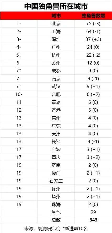 中国独角兽所在城市(图片来源:胡润百富微信公众号)