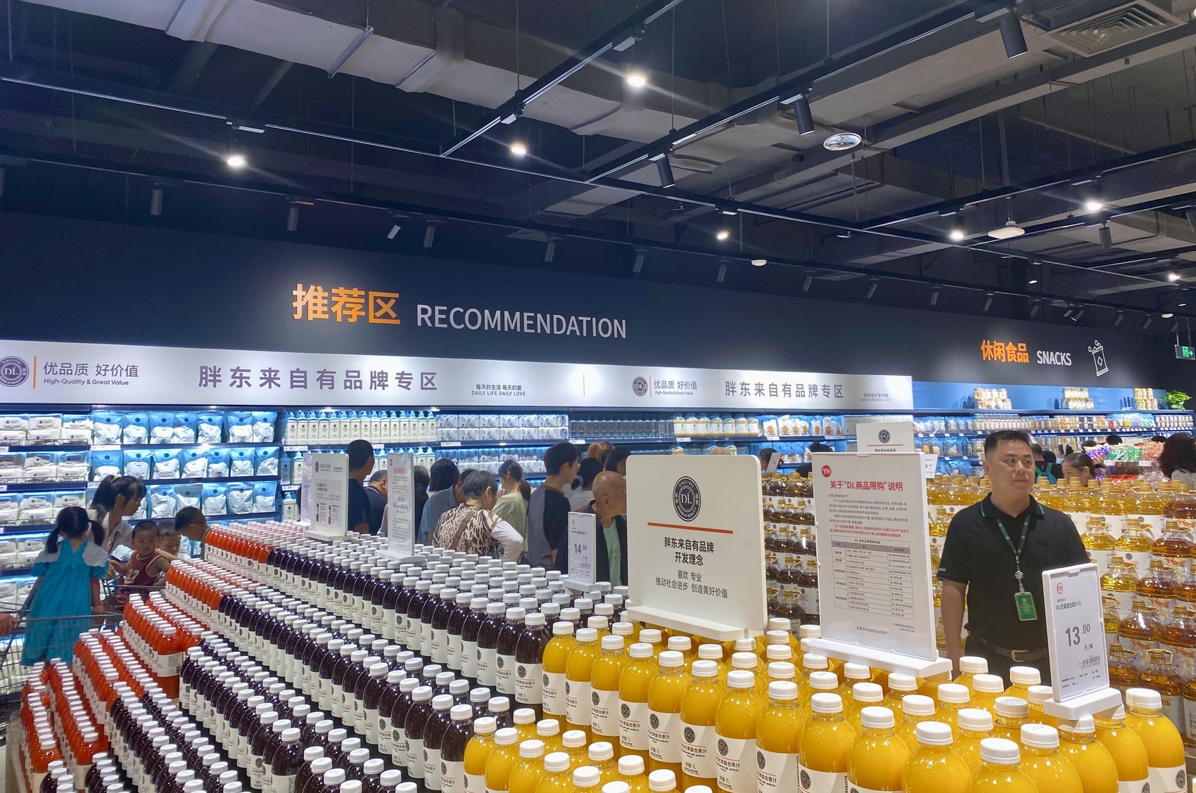 门店设立了胖东来自有品牌专区,汇集了精酿小麦啤酒、多效香氛洗衣液等热门商品。(彭娟 摄)