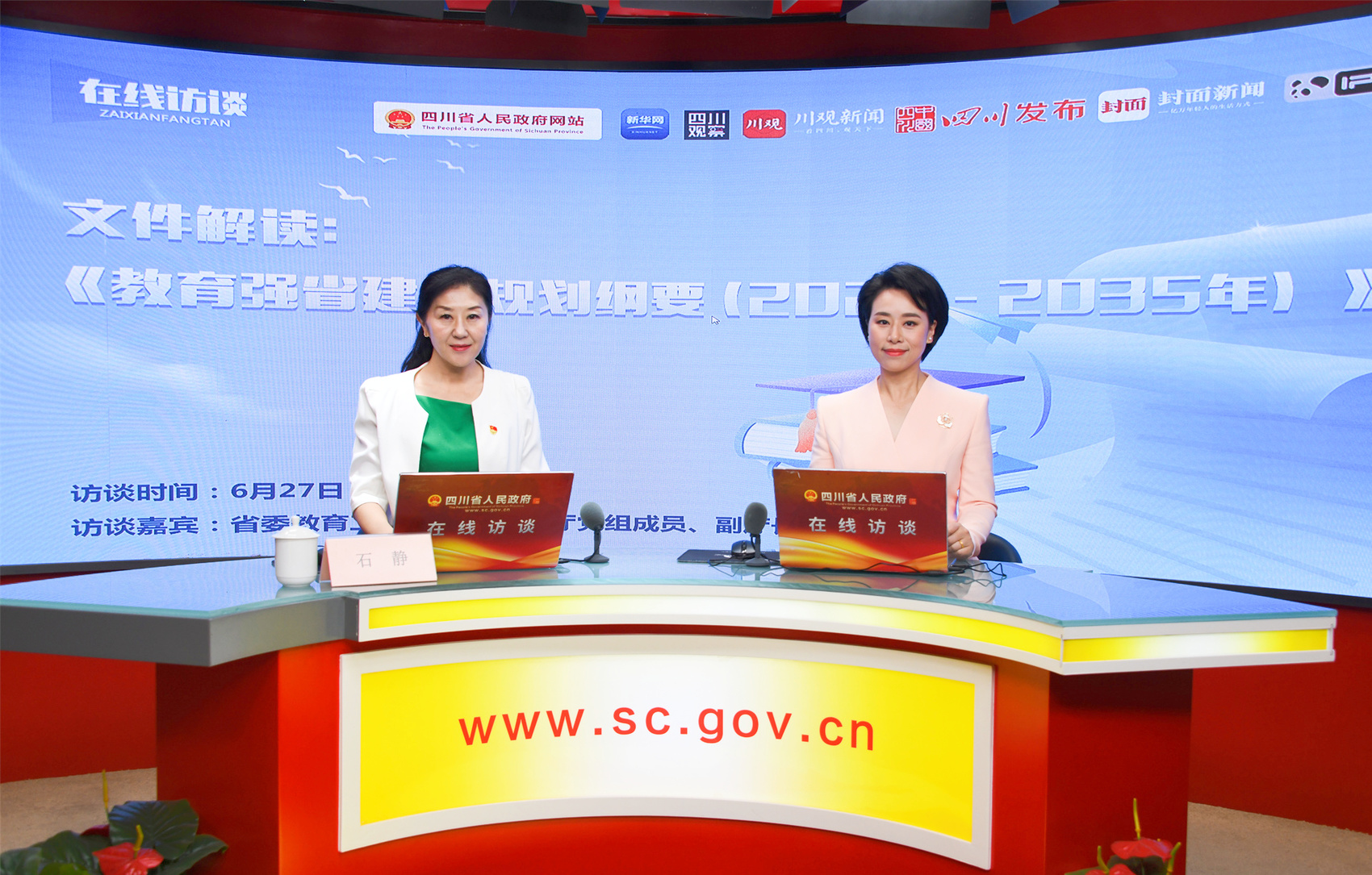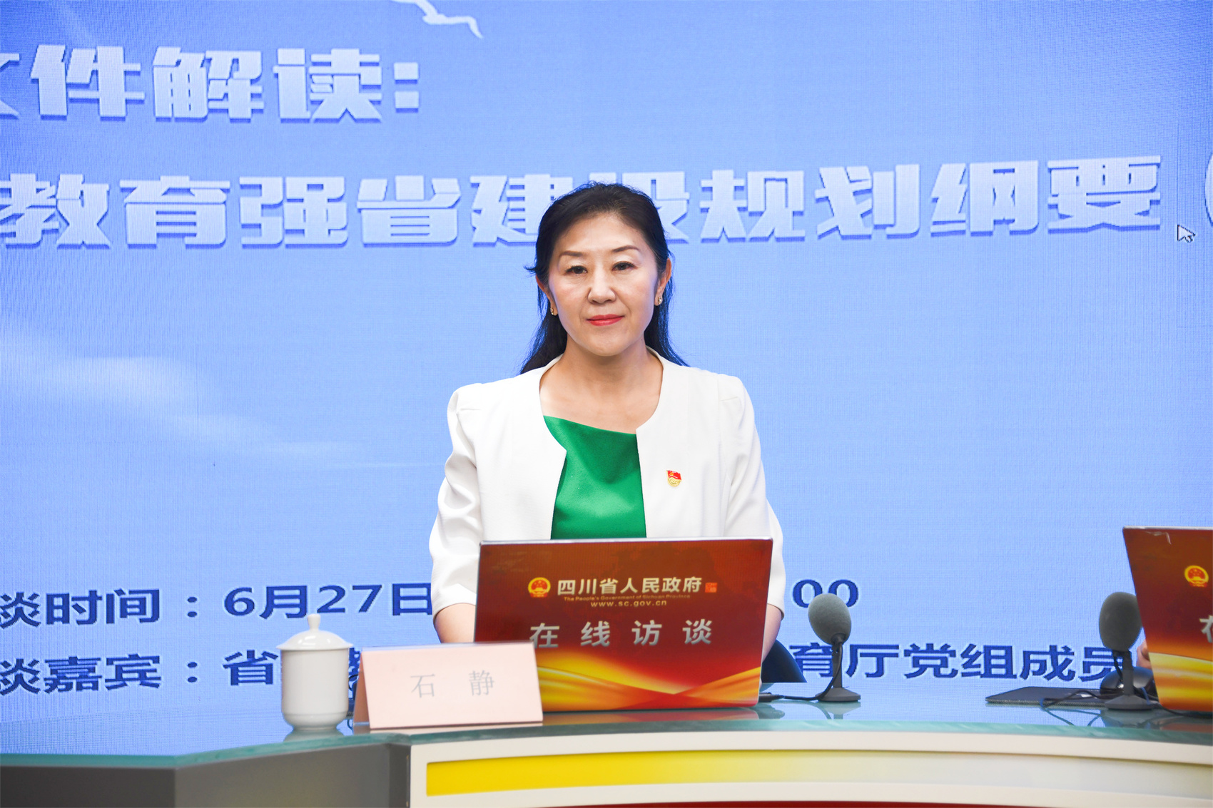 2025年5月,省政府印发《教育强省建设规划纲要(2025—2035年)》(以下简称《纲要》)。6月27日,四川省委教育工委委员,四川省教育厅党组成员、副厅长石静走进四川省人民政府网站“在线访谈”栏目,就广大网友关心、关注的问题作沟通交流。