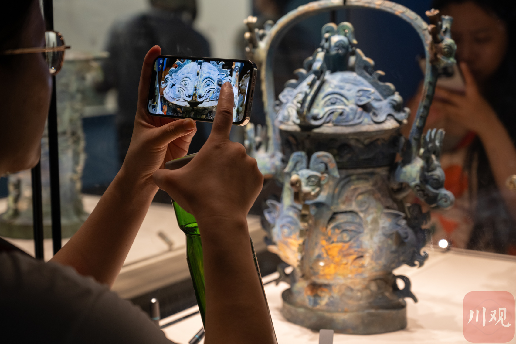 6月27日,观众在成都博物馆观看青铜器特展。