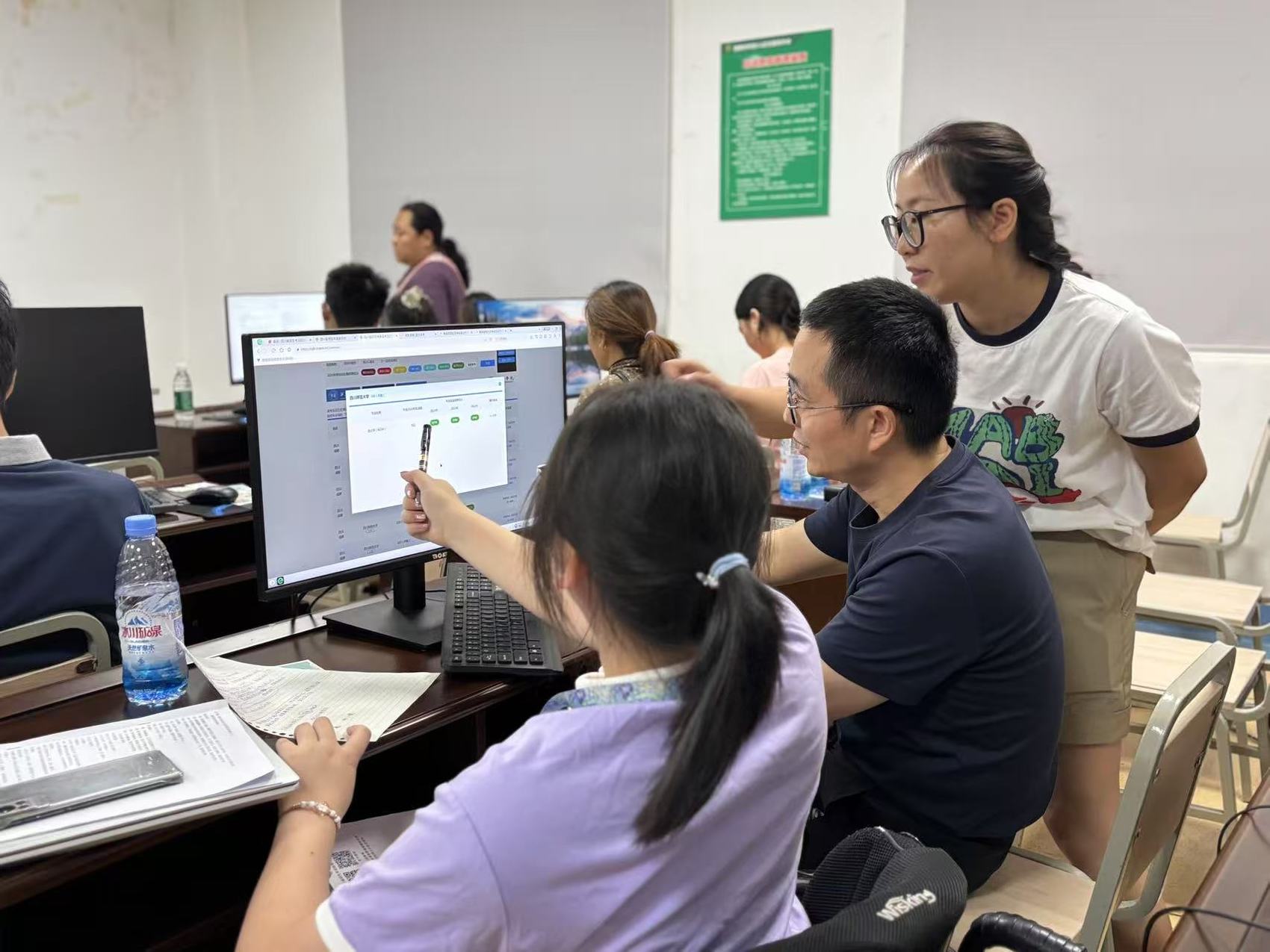 在“技术关”上,工作人员创新采用“现场演示+模拟实操”形式,手把手指导考生使用“四川省普通高校招生志愿填报系统”,特别针对肢体障碍、视障等不同类别考生,演示语音辅助、界面放大等无障碍功能操作,确保“零障碍”完成填报。