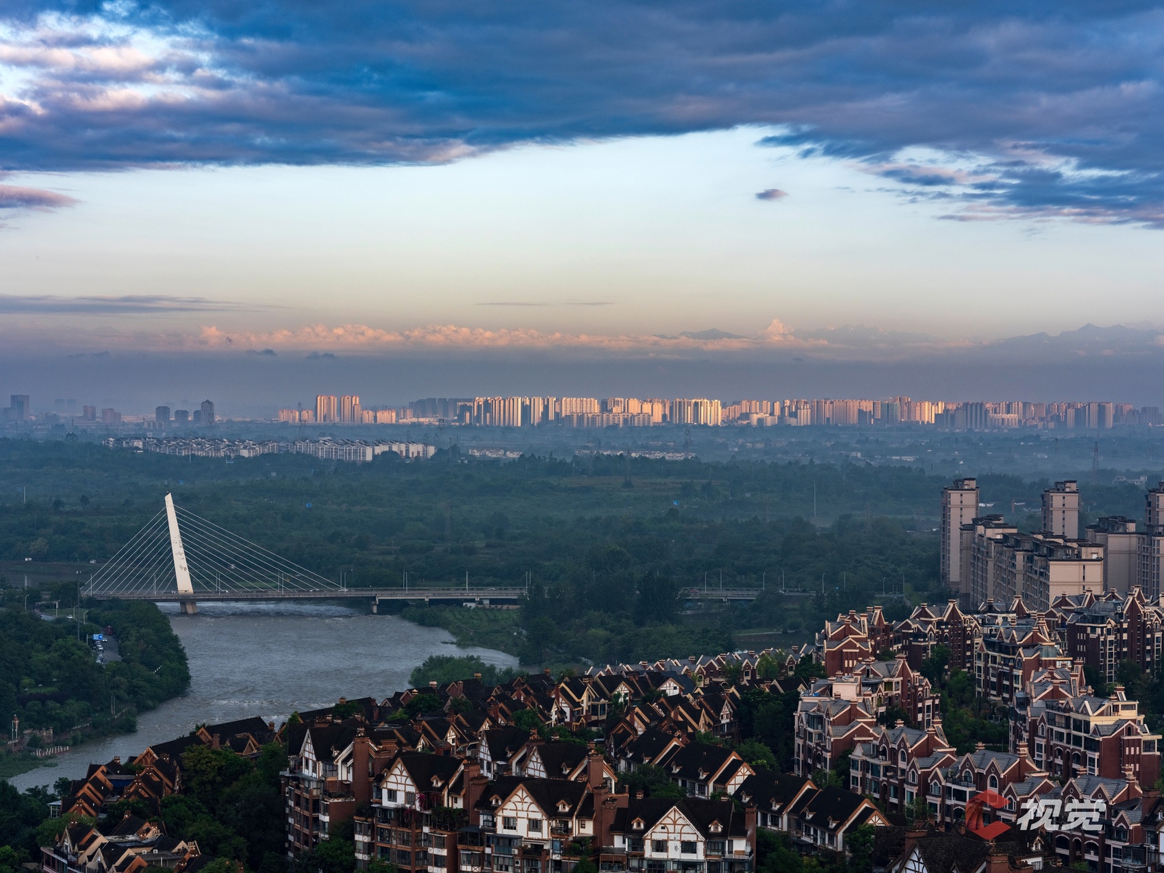 在“一半城市一半公园”的青白江,遥望云端上的巍峨群峰。C视觉签约摄影师 周琦