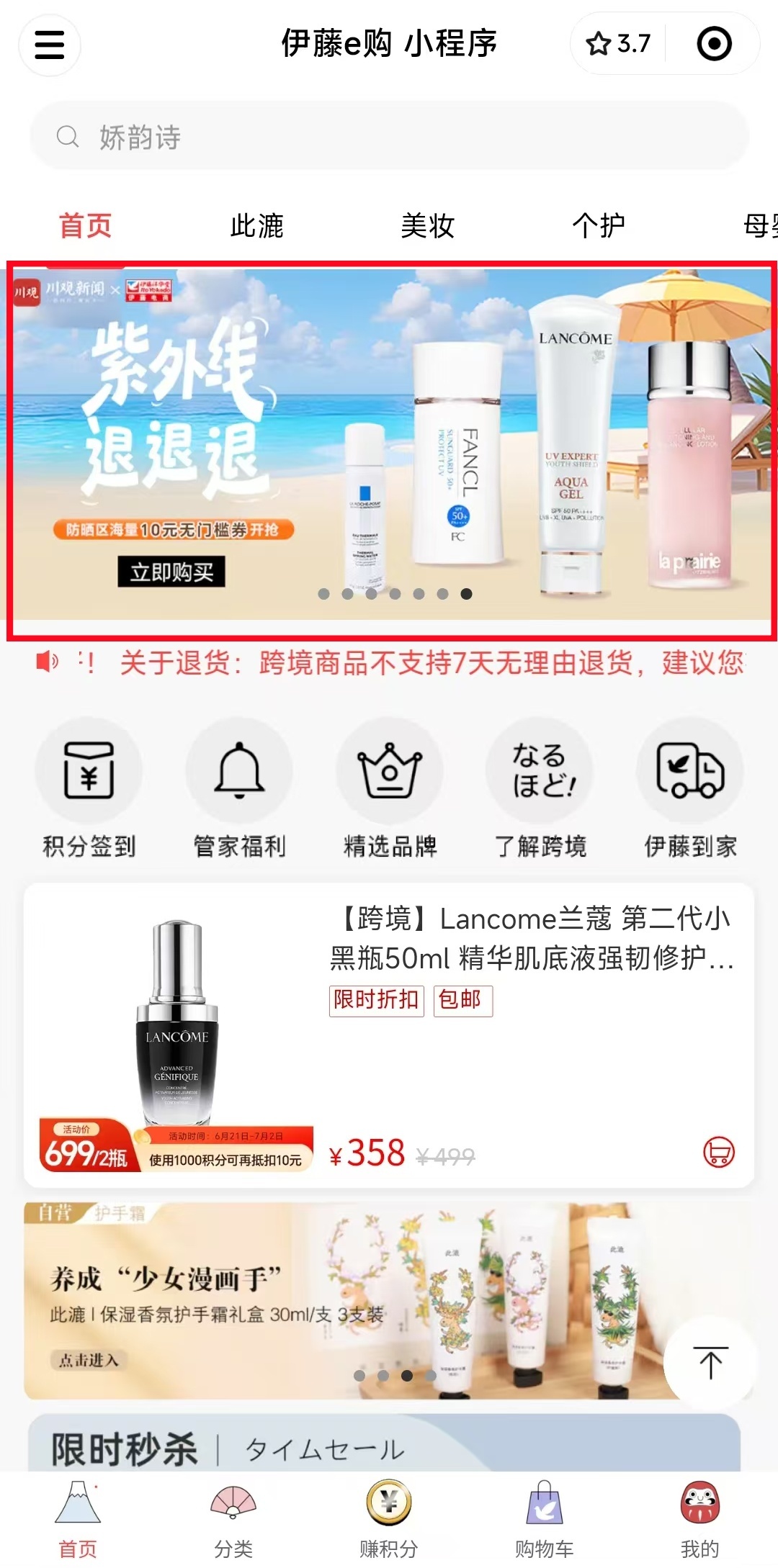 川观新闻*伊藤e购“紫外线退退退”主题防晒商品无门槛10元抵扣券