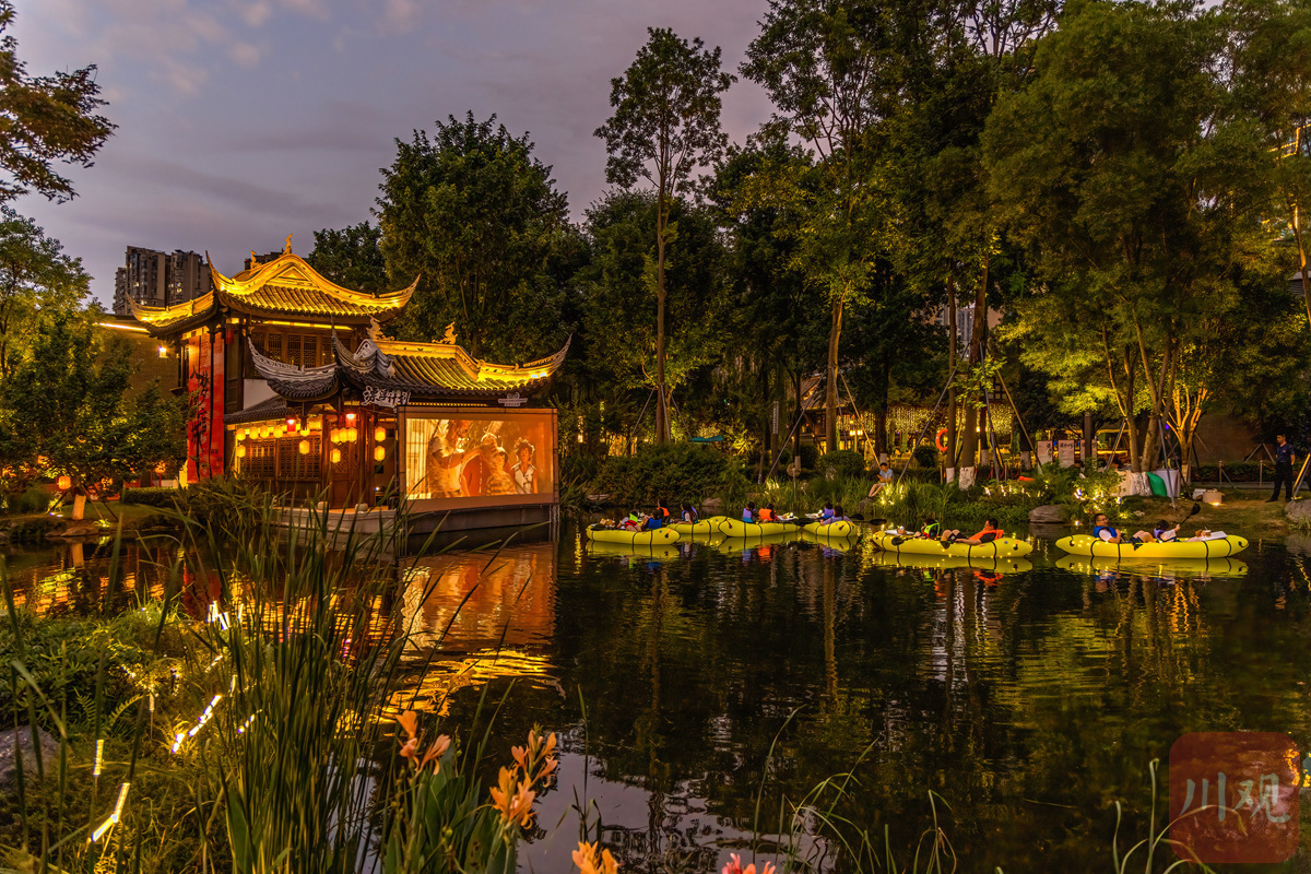 6月21日,成都铁像寺水街千秋池光影摇曳,人们泛舟其上,悠闲观看电影。C视觉签约摄影师 林漫 摄