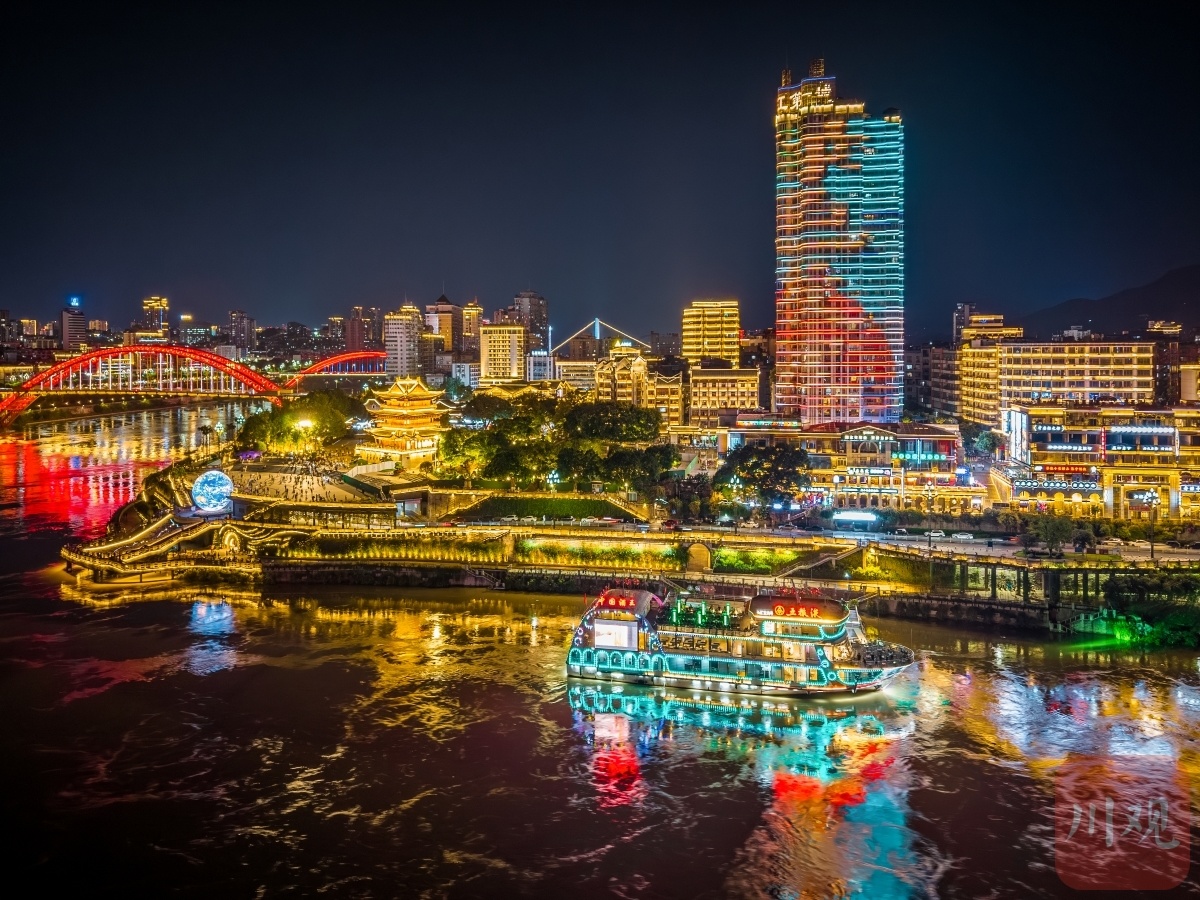 6月26日,宜宾三江口华灯初上,游客登上游船观赏长江首城的魅力夜色。C视觉签约摄影师 张翔升 摄