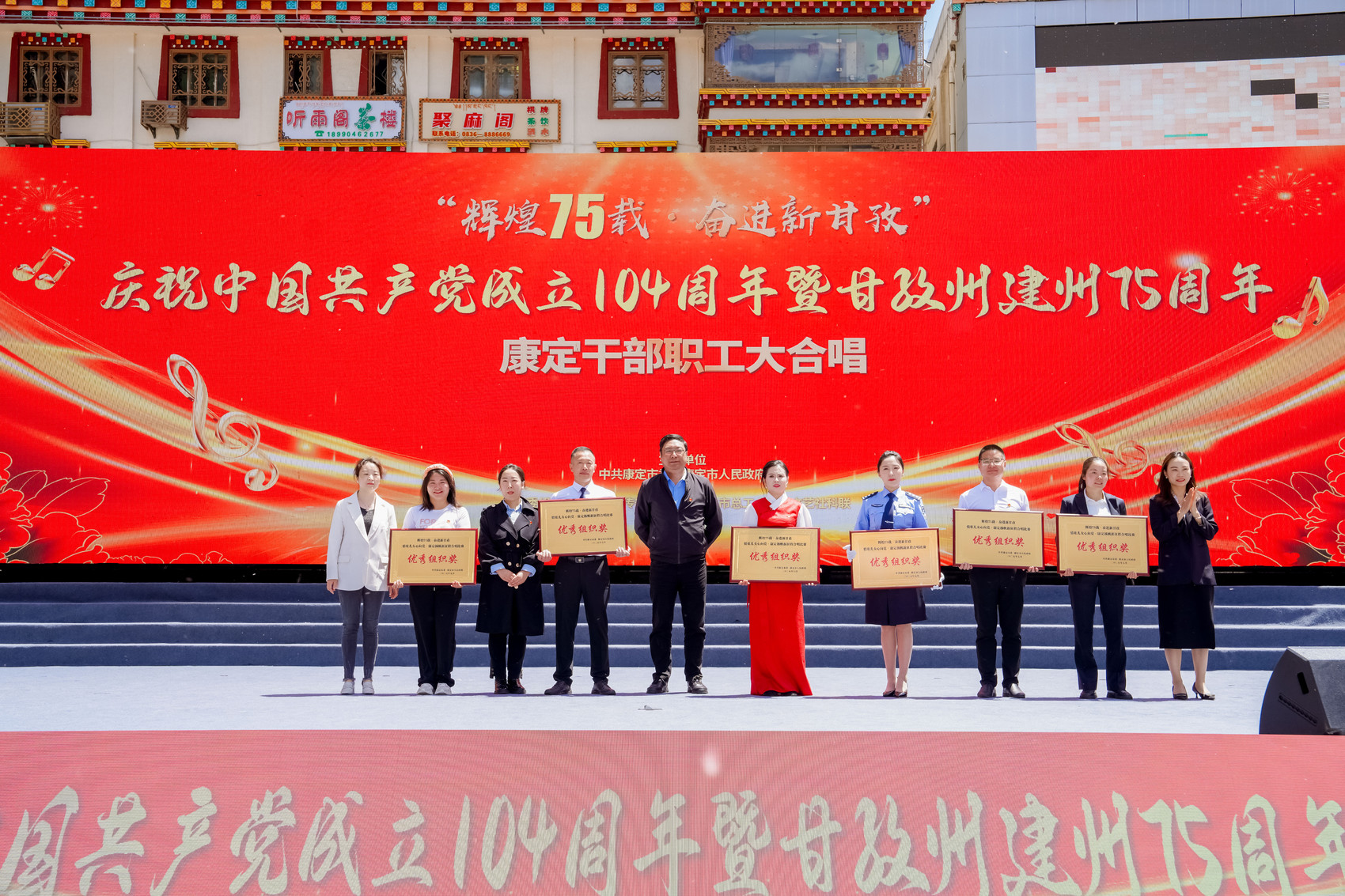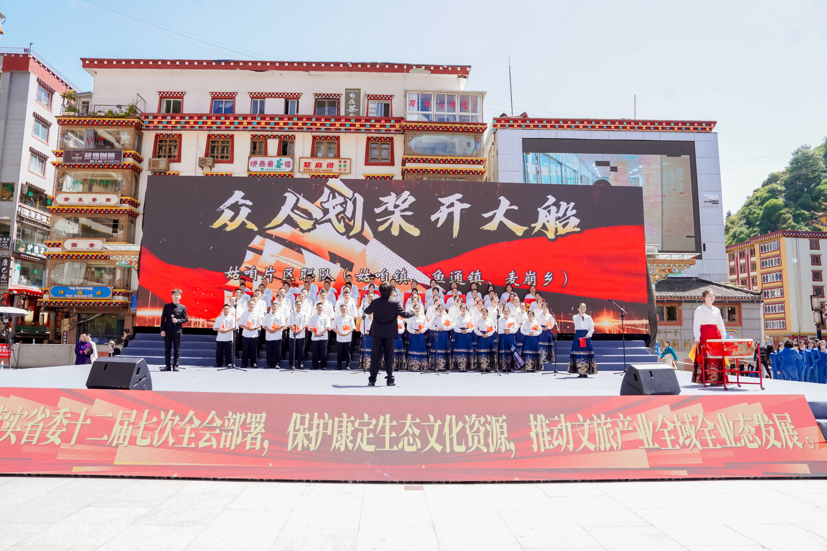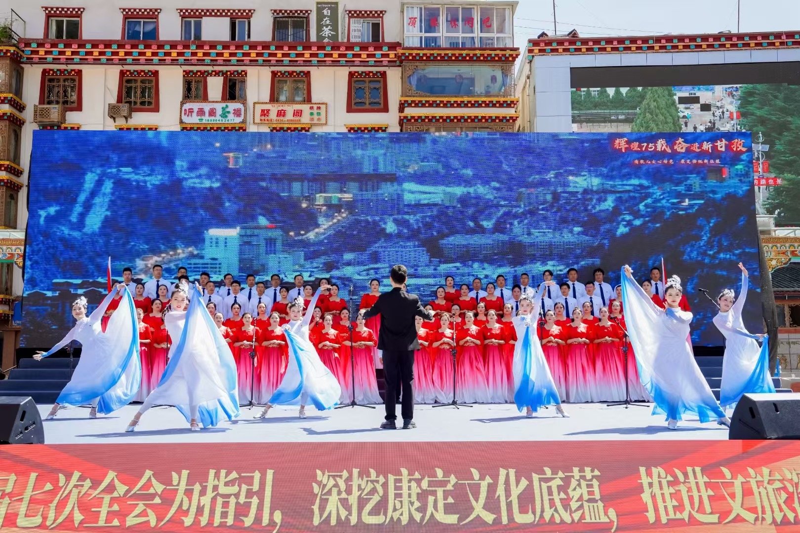 作为“辉煌75载·奋进新甘孜·情歌儿女心向党·康定扬帆新征程”主题活动之一,12支来自康定市各领域的干部职工队伍齐聚一堂,以红色经典歌声,纪念中国人民抗日战争暨世界反法西斯战争胜利80周年,庆祝甘孜州成立75周年,展现新时代康巴儿女团结奋进的精神风貌。