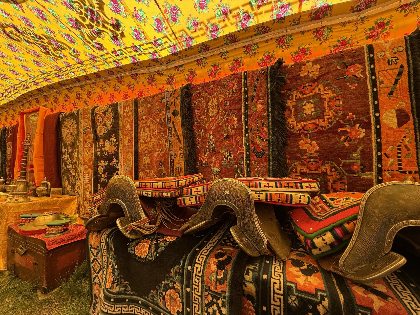 酥油、藏毯、马具……集市内商品琳琅满目。“今天家门口货就卖光。”牧民久所掂着鼓起的钱包笑容灿烂。