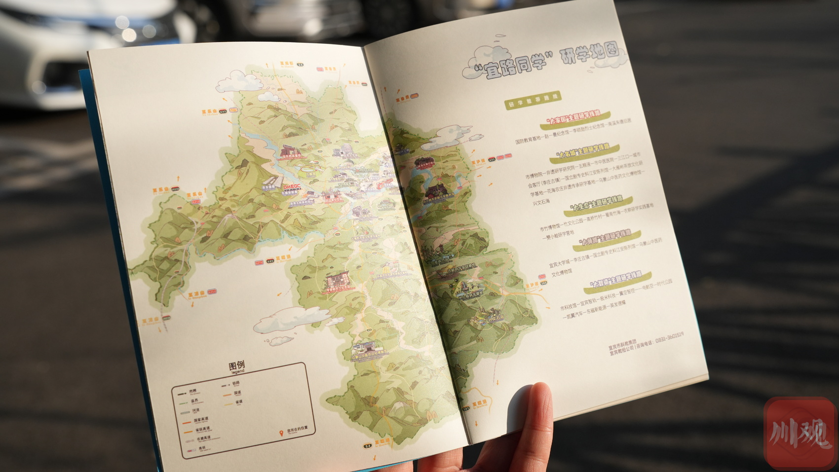 沿着地图,学生们可体验多元探索:在“大家国”路线探访赵一曼纪念馆、南溪朱德故居,接受红色洗礼;在“大名城”路线感受李庄古镇的文脉;走进竹文化博物馆、蜀南竹海感受“大生态”之美;沿着“大师路”走进大学城高校感受学术氛围……