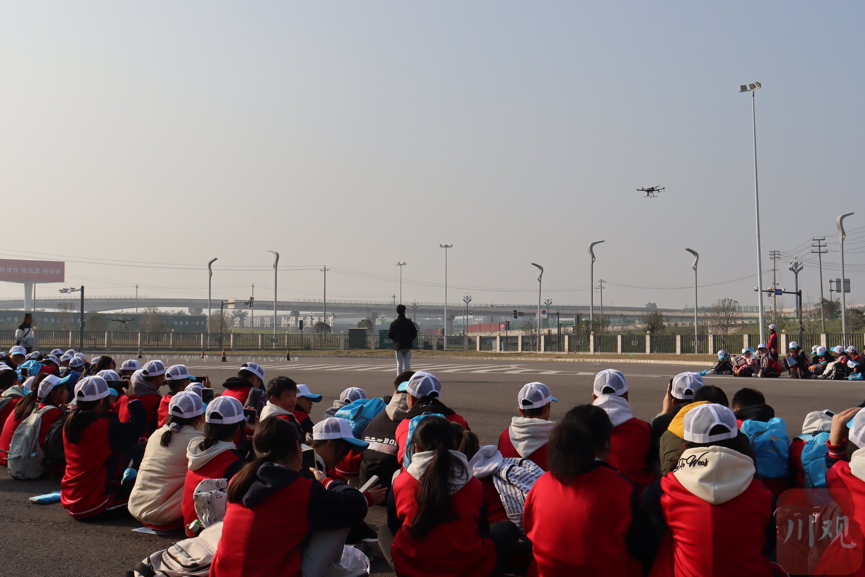 一电航空园区内,研学学生观看无人机表演。陈治吏 摄