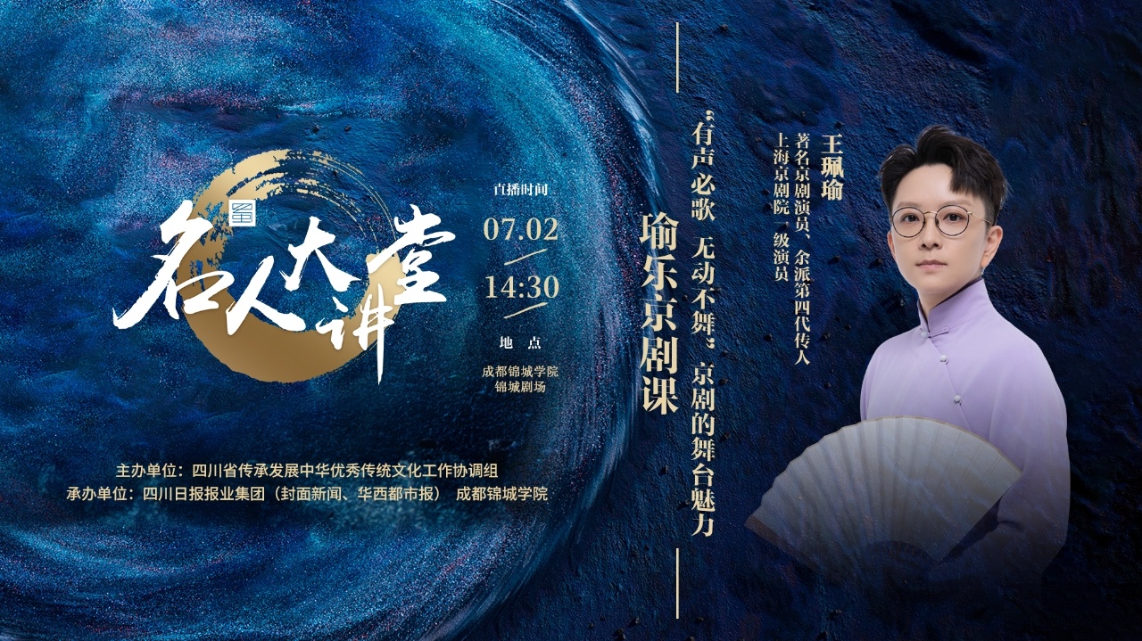 7月2日下午两点半,2025名人大讲堂“非遗传承”季第二场讲座将在成都锦城学院举行。著名京剧演员、余派老生、上海京剧院一级演员王珮瑜,将以《瑜乐京剧课:“有声必歌 无动不舞”——京剧的舞台魅力》为题,以且谈且唱的方式,亲自示范京剧的唱腔韵味,为线上线下观众分享京剧艺术的独特魅力。