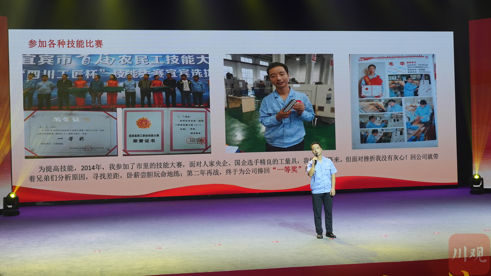 扎根宜宾天工近20年的毛华,凭借对技术的精益求精,从学徒工一步步成长为“全国劳动模范”。面对设备老化危机,他带领团队对旧机床拆装数十次,成功提升设备自动化程度和精度——从一人管两台机床跃升至管八台,每年为公司节省成本超百万元。