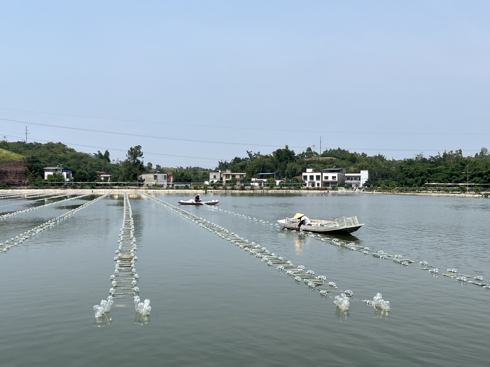 泸县珍珠蚌养殖现场,空瓶起到浮力支撑,在水中套网兜养殖珍珠蚌。洪瑜 摄