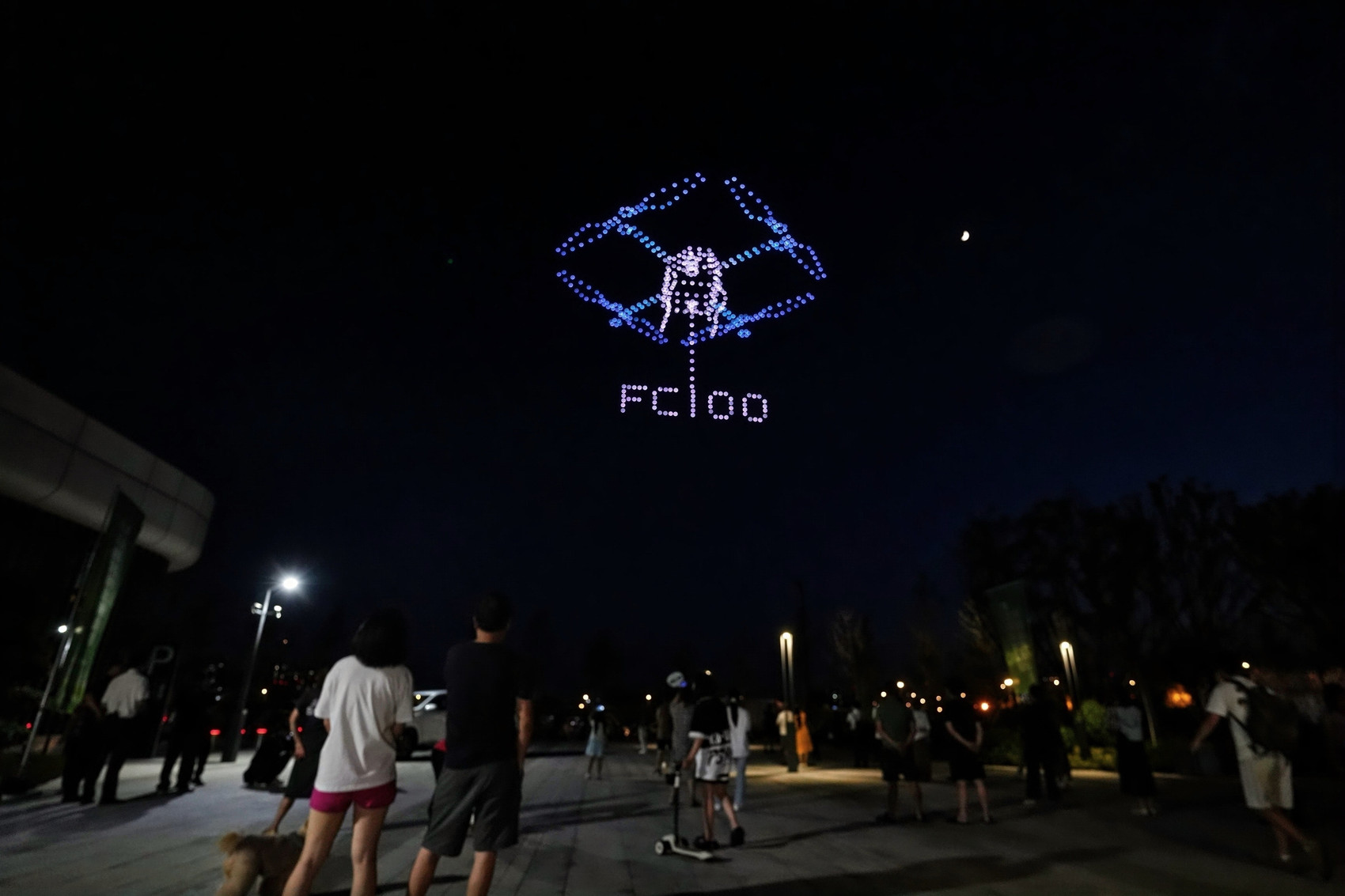 6月30日晚,一场无人机灯光秀表演在成都市金牛区AI创智元上演。