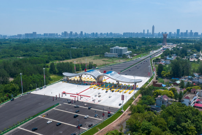 7月1日,车辆通过芜湖龙湾长江隧道收费站(无人机照片)。