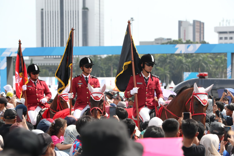当日是印度尼西亚国家警察节,雅加达独立广场举行盛大游行庆祝活动。