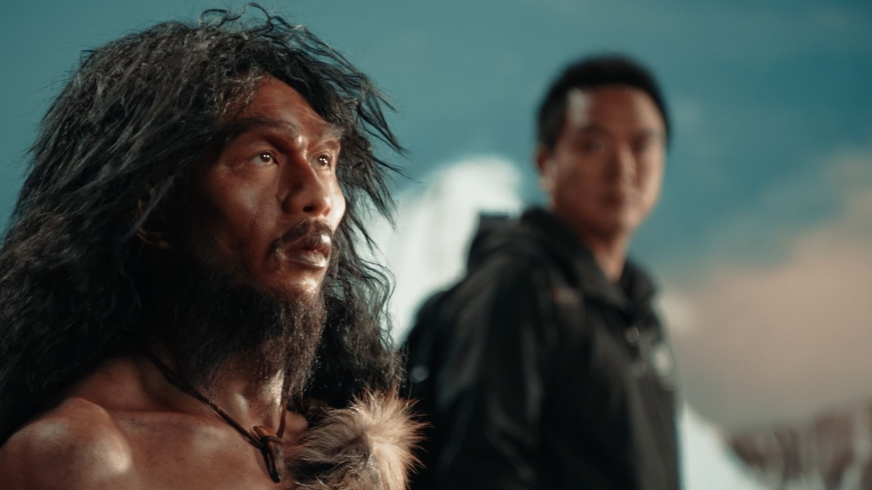 片头的蓝色色调,不仅让观众更好地感受到蓝色星球是人类共同的家园,也有效增加了作品的神秘感。石斧表面的颗粒和纹路,让我们更真切地感受到人类的生命伟力。在情景再现中,考古工作人员与演员演绎的古人类共同出现,让观众对生命的力量展开更多思考。