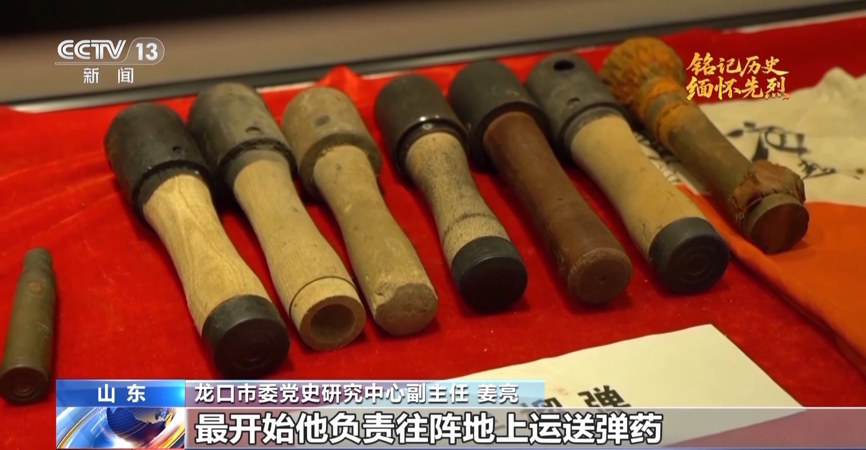 龙口市委党史研究中心副主任 姜亮:任常伦最早就只有刀和手榴弹,最开始他负责往阵地上运送弹药。有一次他看到几个战士打完子弹和敌人拼刺刀的时候,他看准时机偷袭刺死一名日军士兵,夺了他的枪。战斗结束后,这杆枪就奖励给了他。
