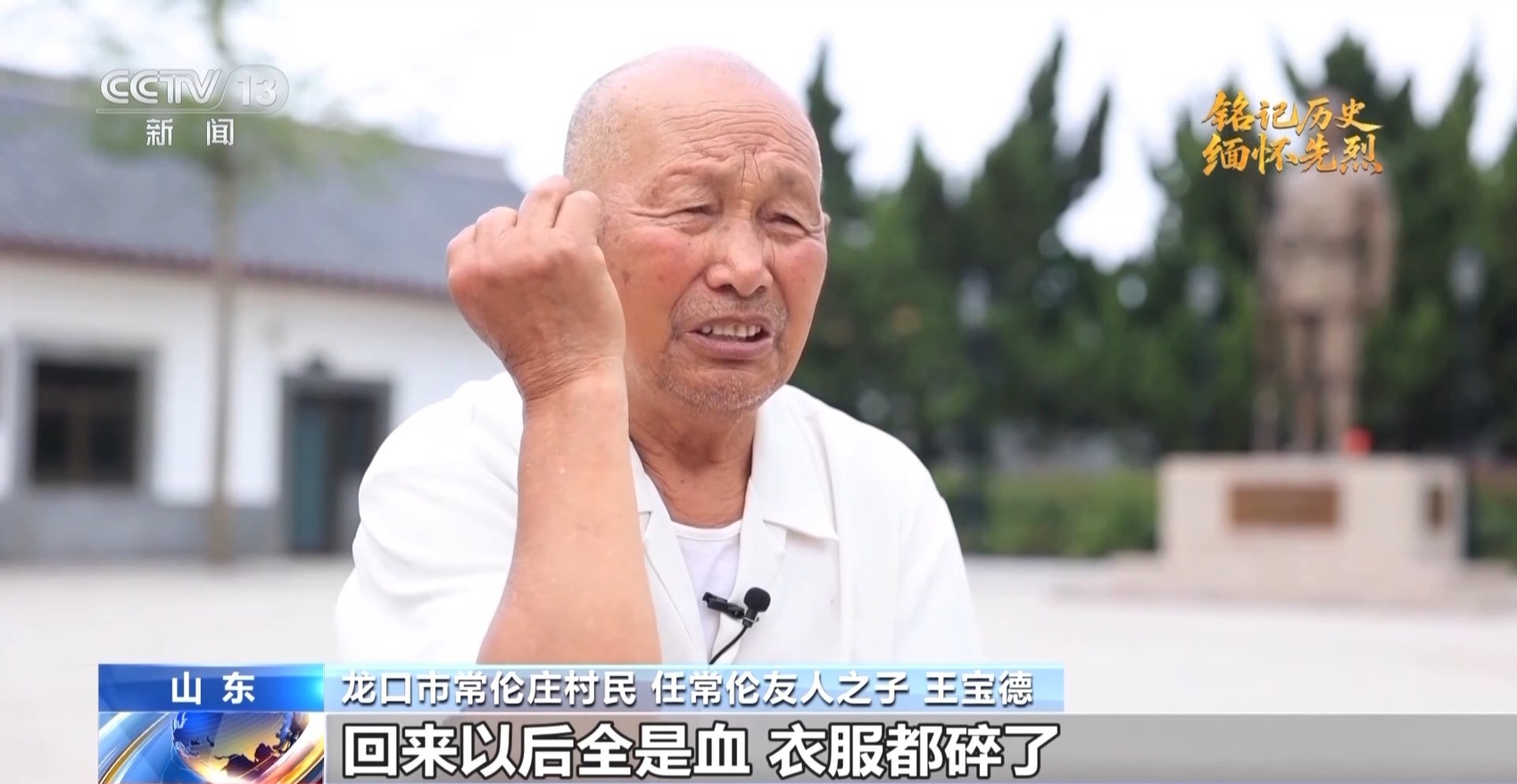 龙口市常伦庄村民、任常伦友人之子 王宝德:就滚、爬,最后他把史德明拖出来,还不敢直起腰来,不敢背。两个胳膊出来以后全是血,还不敢这么样撑着,这样身子就高了。他就这样用手肘爬,回来以后全是血,衣服都碎了。