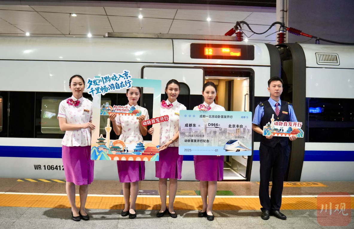 7月2日19:28,成都东始发终到北京丰台的D966次列车开行。作为成都到北京首趟“夕发朝至”动卧列车,当天开行的D966次列车经广元、汉中、西安北、石家庄、高碑店东,于次日6:47到达北京丰台,全程运行时间11小时19分。