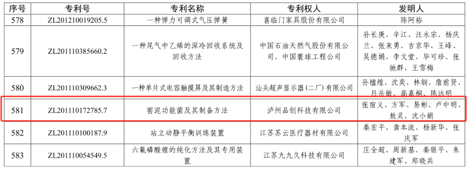 7月2日,记者从泸州老窖股份有限公司(以下简称泸州老窖)获悉,近日,国家知识产权局发布了《国家知识产权局关于第二十五届中国专利奖授奖的决定》,泸州老窖旗下子公司泸州品创科技有限公司持有的发明专利“窖泥功能菌及其制备方法”荣获第二十五届中国专利优秀奖。